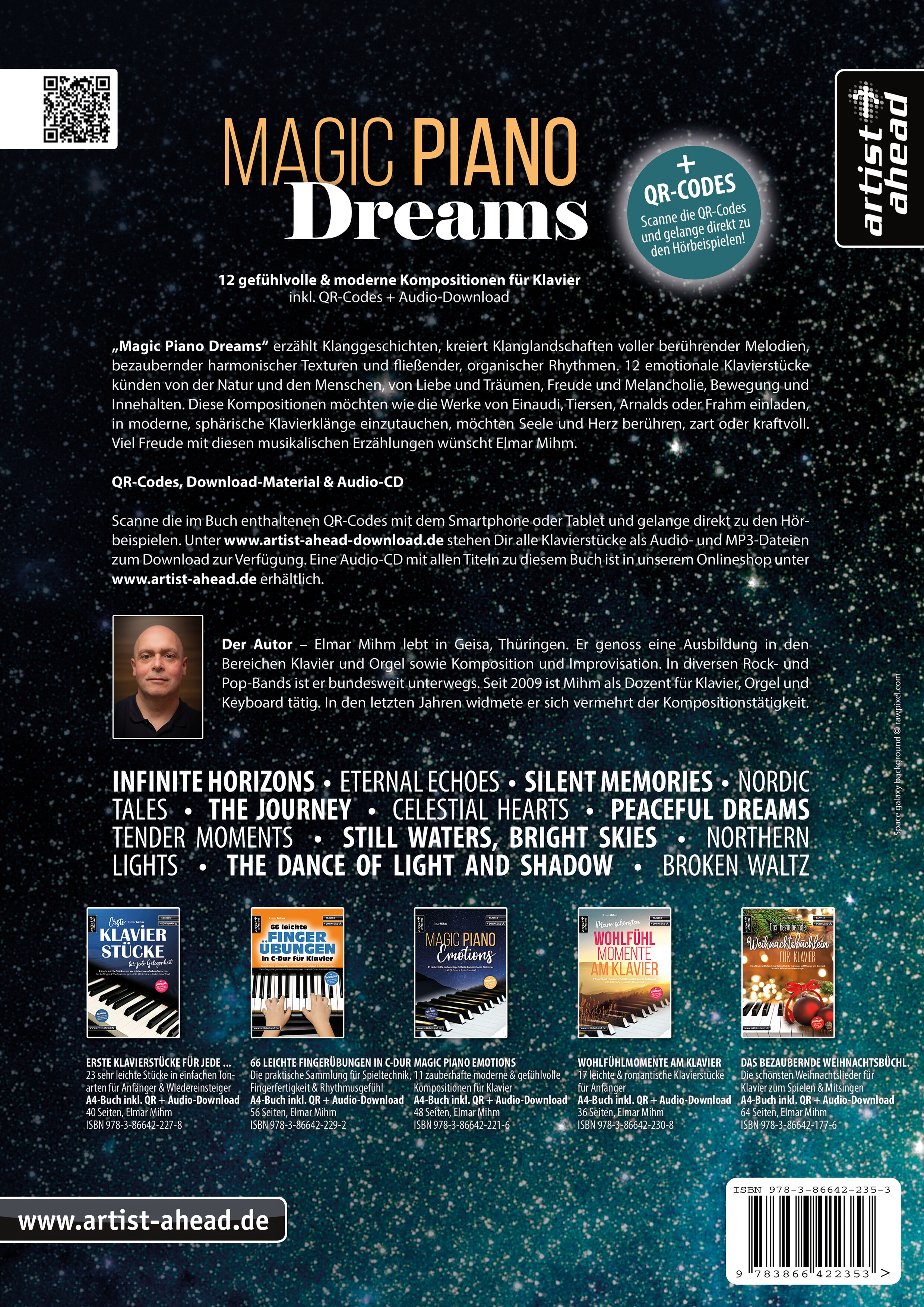 Scanne die im Buch enthaltenen QR-Codes mit dem Smartphone oder Tablet und gelange direkt zu den Hörbeispielen. Unter artist-ahead-download.de stehen Dir alle Klavierstücke als Audio- und MP3-Dateien zum Download zur Verfügung. Eine Audio-CD mit allen Titeln zu diesem Buch ist in unserem Onlineshop unter artist-ahead.de erhältlich.
