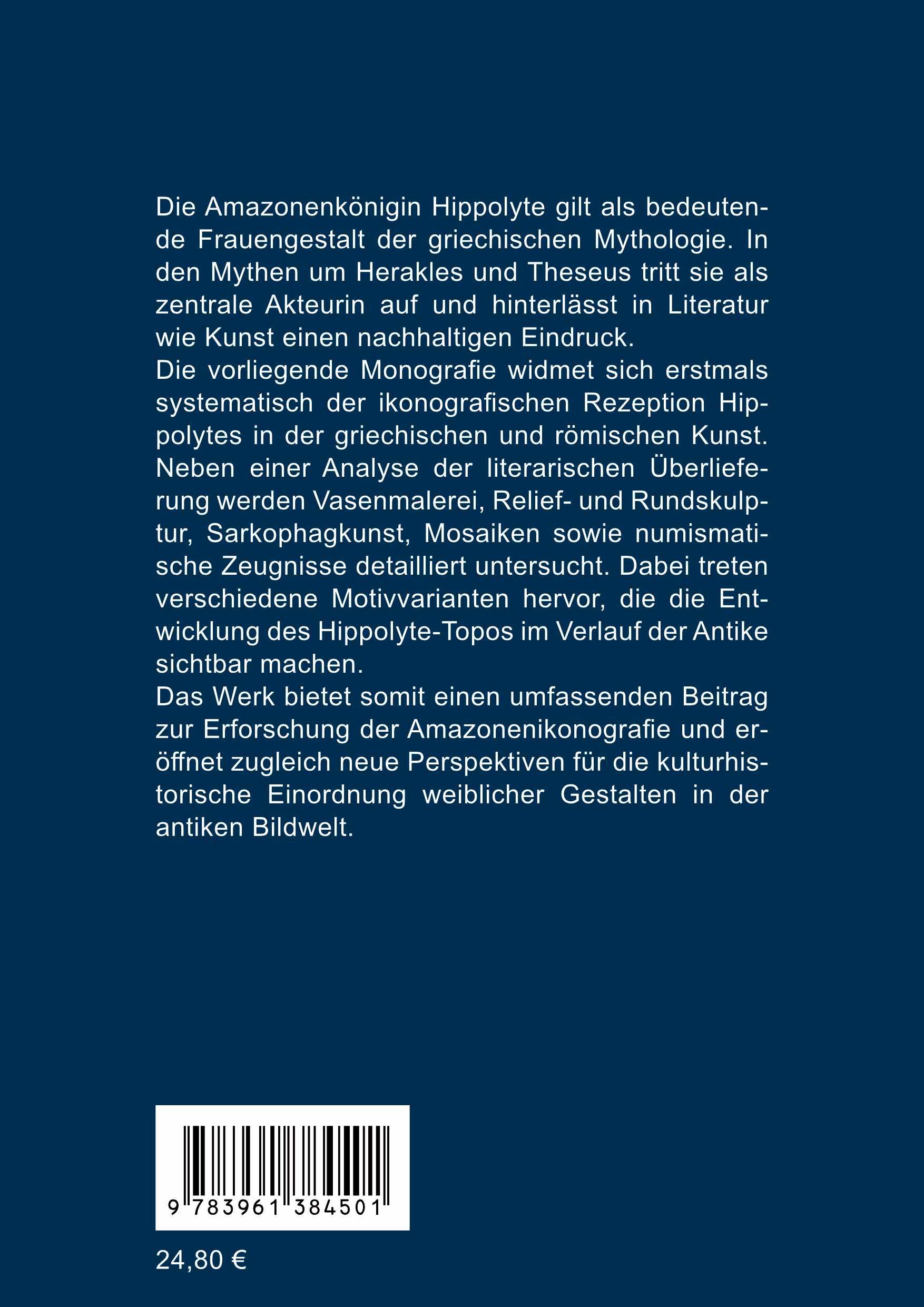 Die vorliegende Monografie widmet sich erstmals systematisch der ikonografischen Rezeption Hippolytes in der griechischen und römischen Kunst. Neben einer Analyse der literarischen Überlieferung werden Vasenmalerei, Relief- und Rundskulptur, Sarkophagkunst, Mosaiken sowie numismatische Zeugnisse detailliert untersucht. Dabei treten verschiedene Motivvarianten hervor, die die Entwicklung des Hippolyte-Topos im Verlauf der Antike sichtbar machen.