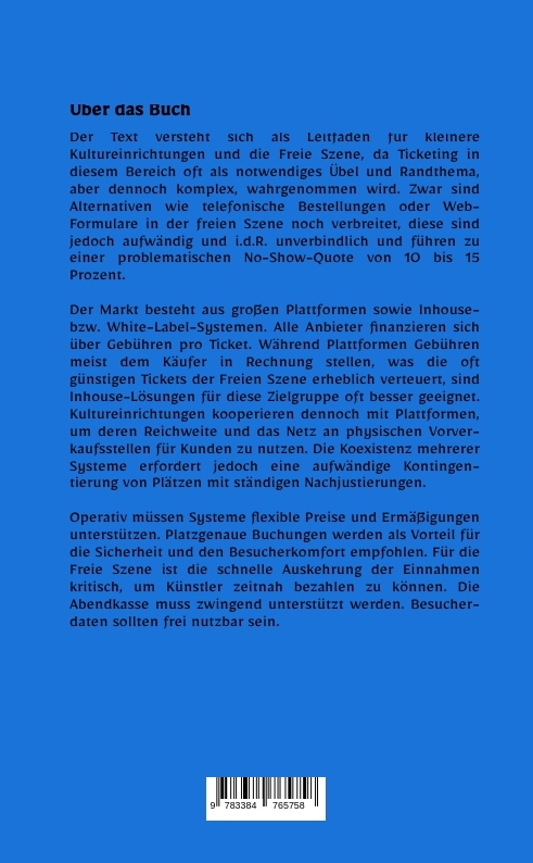 | Schlagworte | einlass • Eventim • Freie Szene • Kultureinrichtung • onlinekauf • Reservix • Ticketing • ticketmaster • venticks • Webshop |