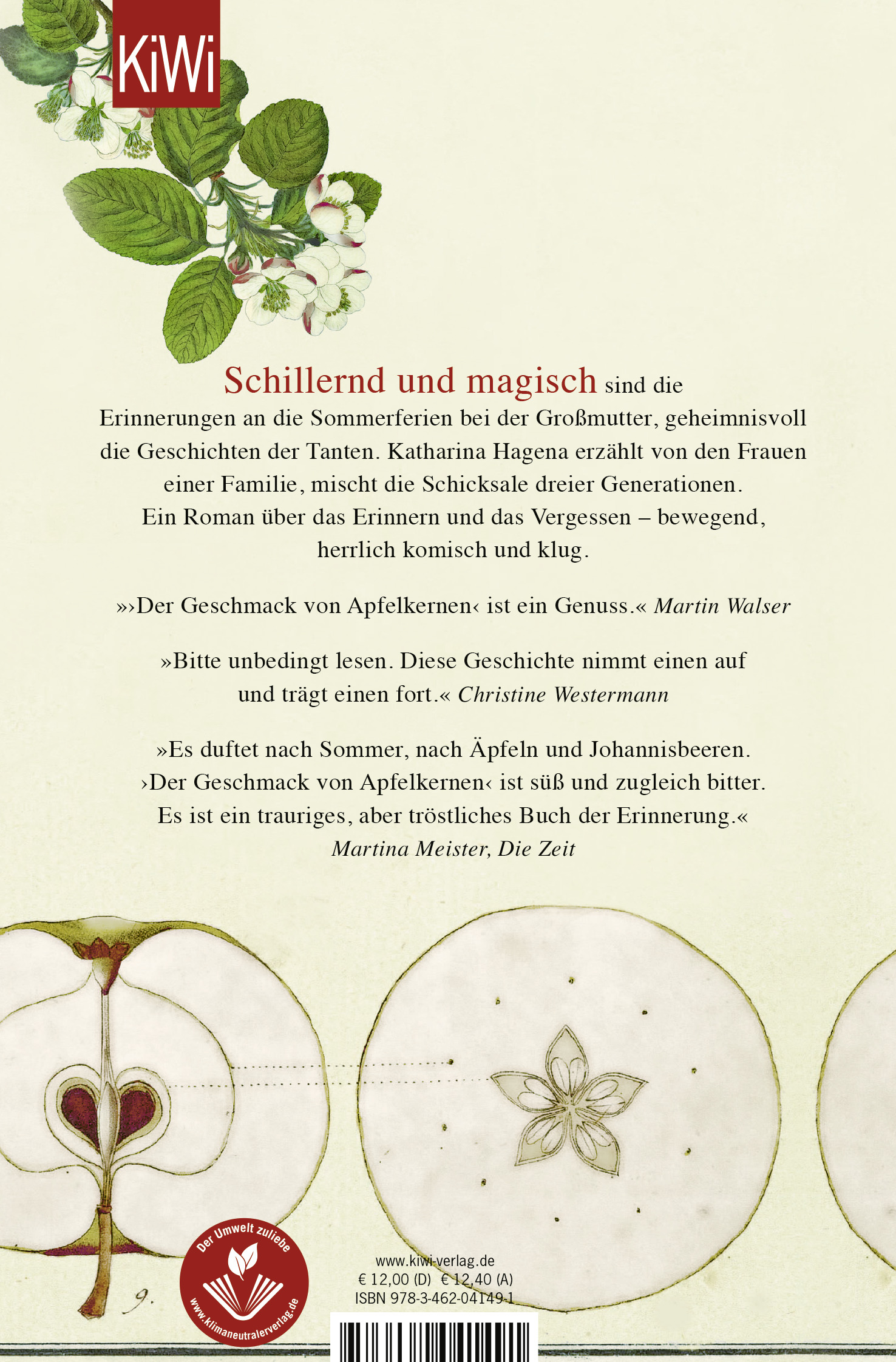 | Schlagworte | Apfelkern • Belletristik • Erbe • Erinnerung • Familie • Film • Frauen • Katharina Hagena • Kiepenheuer & Witsch • Lebensthemen / Lebensbewältigung; Romane/Erzählungen • Liebe • Roman • Schicksal • Sommerferien • Taschenbuch / Belletristik/Gegenwartsliteratur (ab 1945) • Unfall • Vergangenheit |