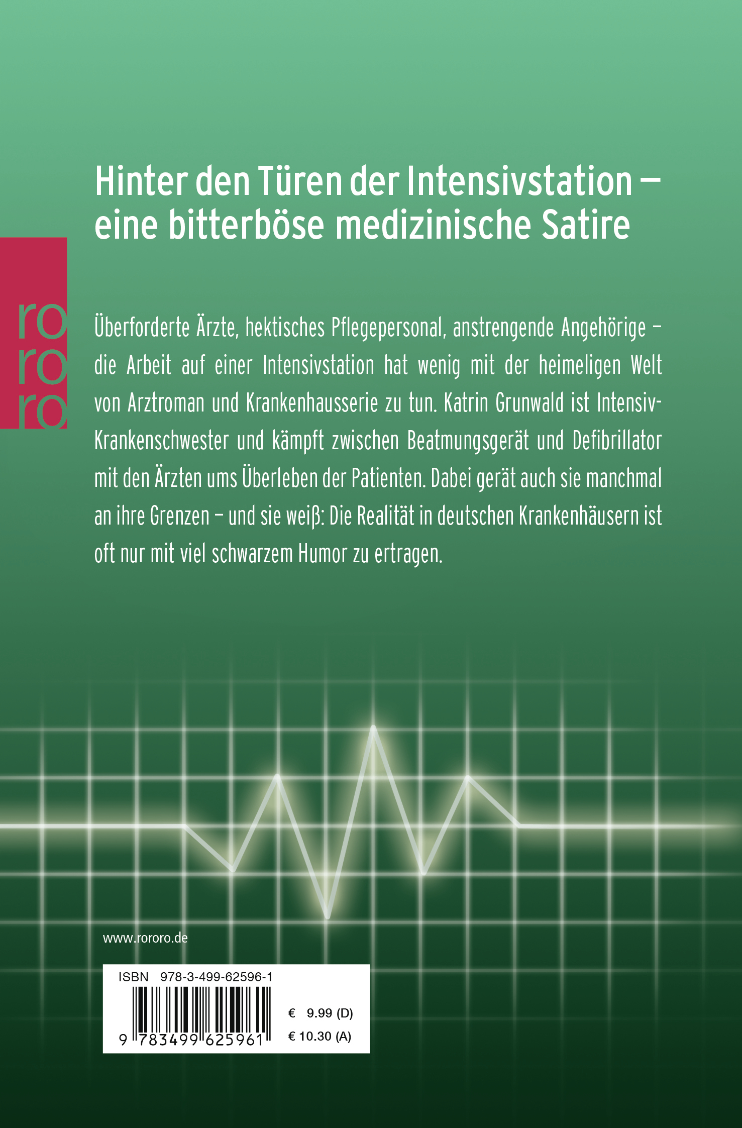 Überforderte Ärzte, hektisches Pflegepersonal, anstrengende Angehörige-die Arbeit auf einer Intensivstation hat wenig mit der heimeligen Welt von Arztroman und Krankenhausserie zu tun. Katrin Grunwald ist Intensiv Krankenschwester und kämpft zwischen Beatmungsgerät und Defibrillator mit den Ärzten ums Überleben der Patienten. Dabei gerät auch sie manchmal an ihre Grenzen - und sie weiß: Die Realität in deutschen Krankenhäusern ist oft nur mit viel schwarzem Humor zu ertragen.