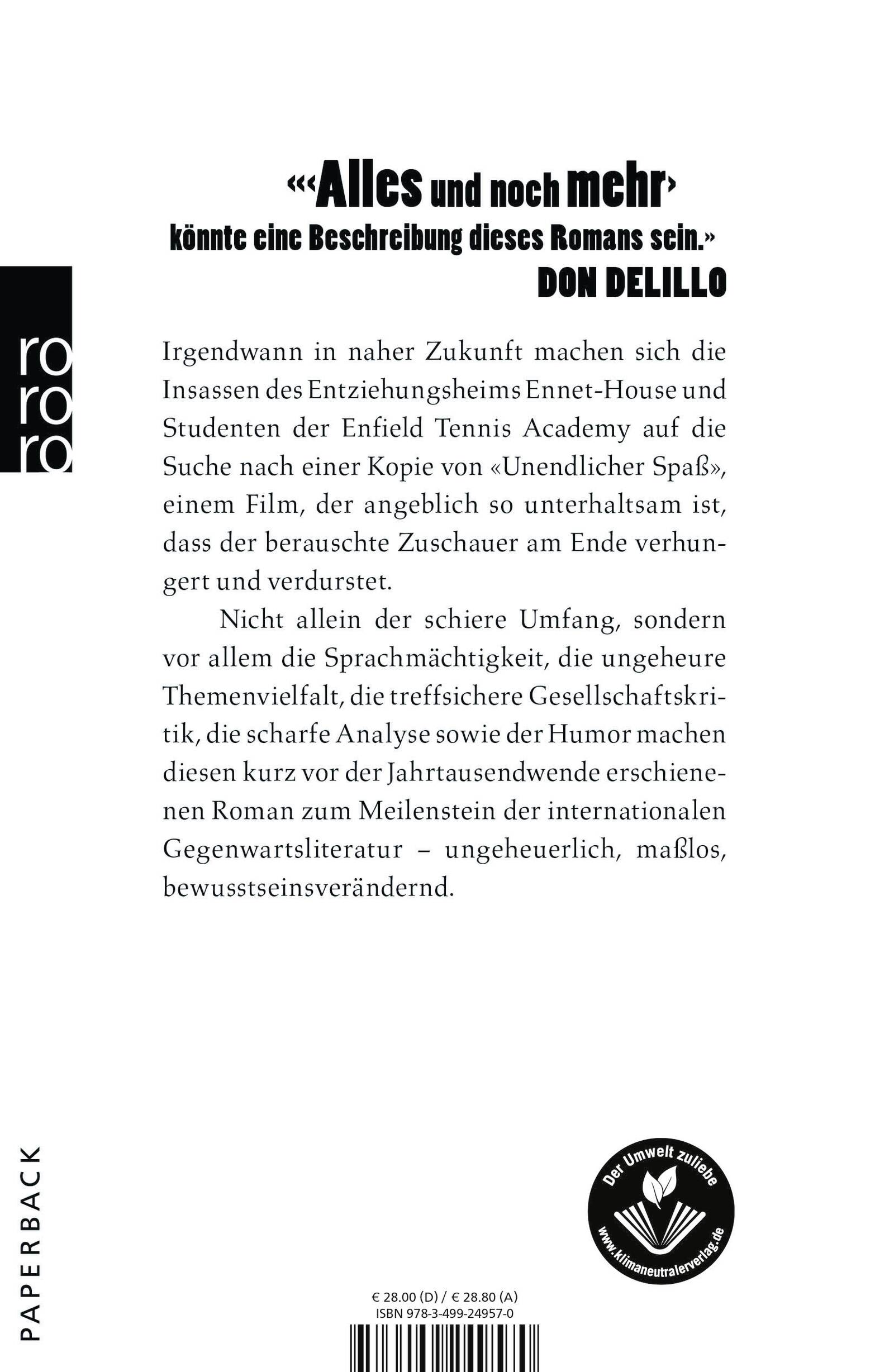 »Infinite Jest ist für den Beginn des einundzwanzigsten Jahrhunderts das, was Musils Mann ohne Eigenschaften für das vergangene Jahrhundert war.« Frankfurter Allgemeiner Zeitung