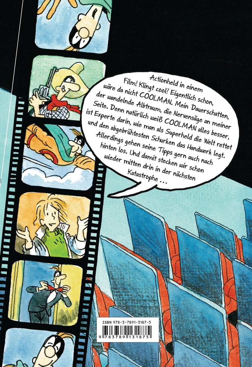 ...und Action! COOLMAN macht Chaos am Filmset Film ab! Durch Zufall gerät Kai in ein Filmcasting und erhält prompt die Hauptrolle! Dass COOLMAN auch mitspielen möchte, versteht sich von selbst und er hat auch super Tipps - vor allem für die Stunts, denn mit Action kennt sich niemand besser aus als er. Dass Alex und Justin, Kais Freunde auch dabei sind, macht die Sache nicht besser, denn die beiden dürfen nichts von COOLMAN wissen. Also absoluter Katastrophenalarm! Doch dann geraten sie an echte Gangster, und jetzt wird aus dem Kinoabenteuer ein handfester Thriller ... Der dritte Band der Serie - mit vielen Comics und zum Weglachen lustig!