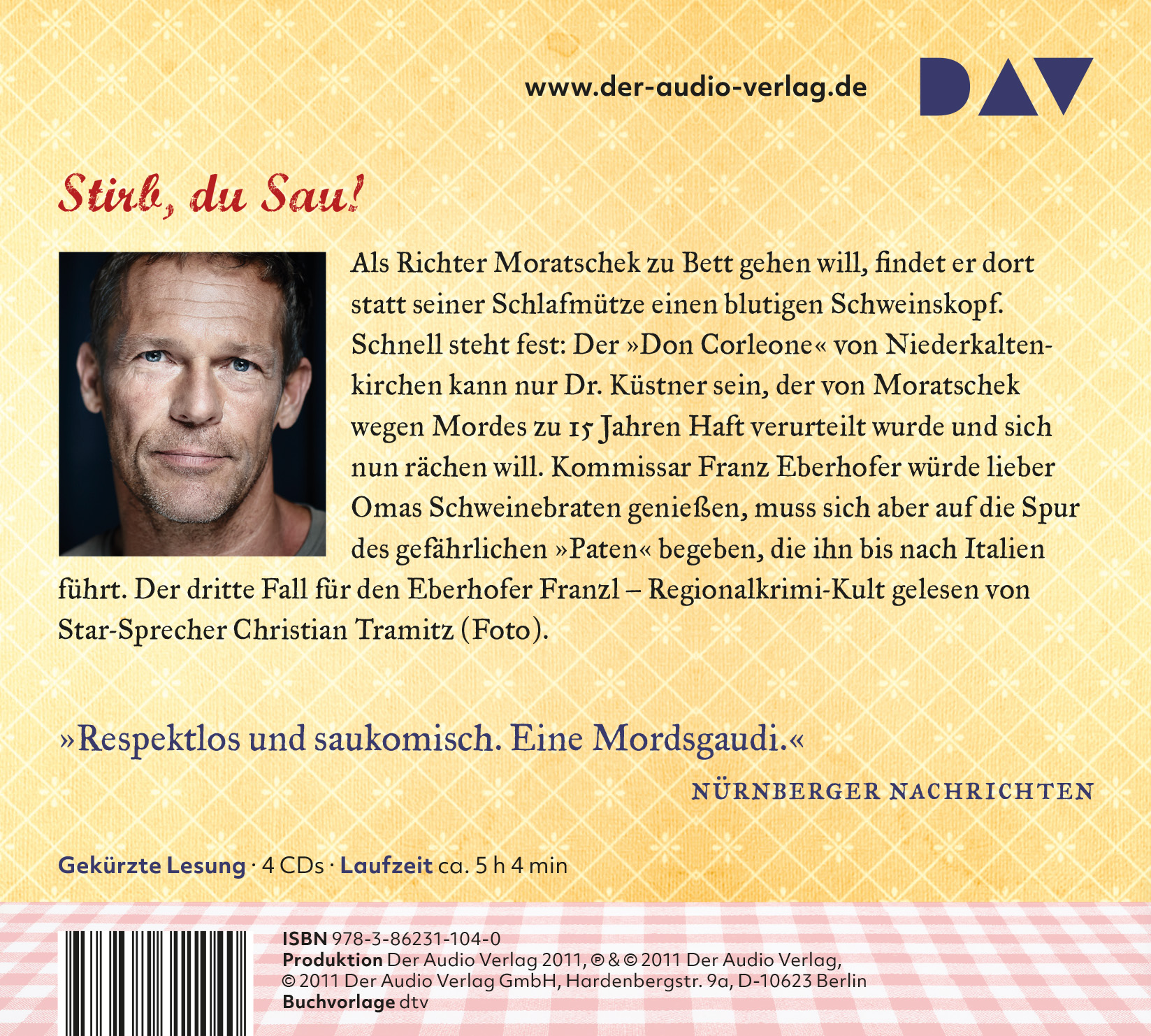 'von Christian Tramitz gelesen., der sowohl der perfekte Sprecher ist, als auch die beste Schauspieler-Besetzung für diese Rolle wäre. Wie der Franz wohl sagen würde: Einwandfreie Sache!'happy-end-buecher.de'Eine Mordsgaud