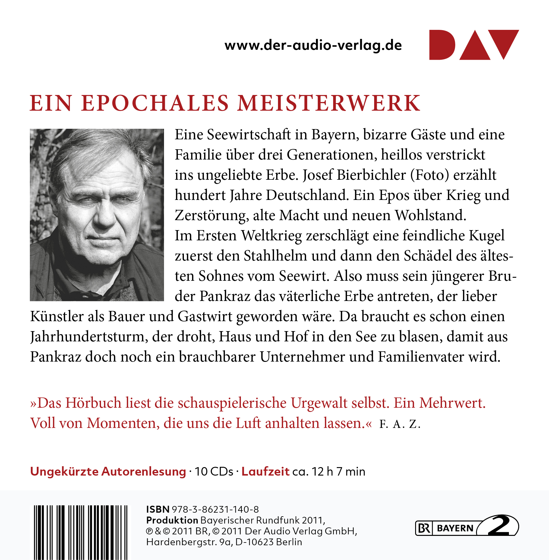 | Schlagworte | 1. Weltkrieg • Bayern, Geschichte; Romane/Erzählungen • Deutschland • Erbe • Erster Weltkrieg • Familie • Familiensaga • Gastwirt • Generationen • Geschichte • Hörbuch • Hörbuch; Autorenlesung • Hörbuch; Autorenlesungen (Audio-CDs) • Hörbuch des Jahres (Hörbuchpreis) • Hörbuch; Literaturlesung • Hörbuch; Literaturlesungen • Hörbuch; Literaturlesungen 345016 • Hörbuch; Literaturlesungen (Audio-CDs) • Krieg • Lesung • Tradition • Unternehmer • Wohlstand • Zerstörung |