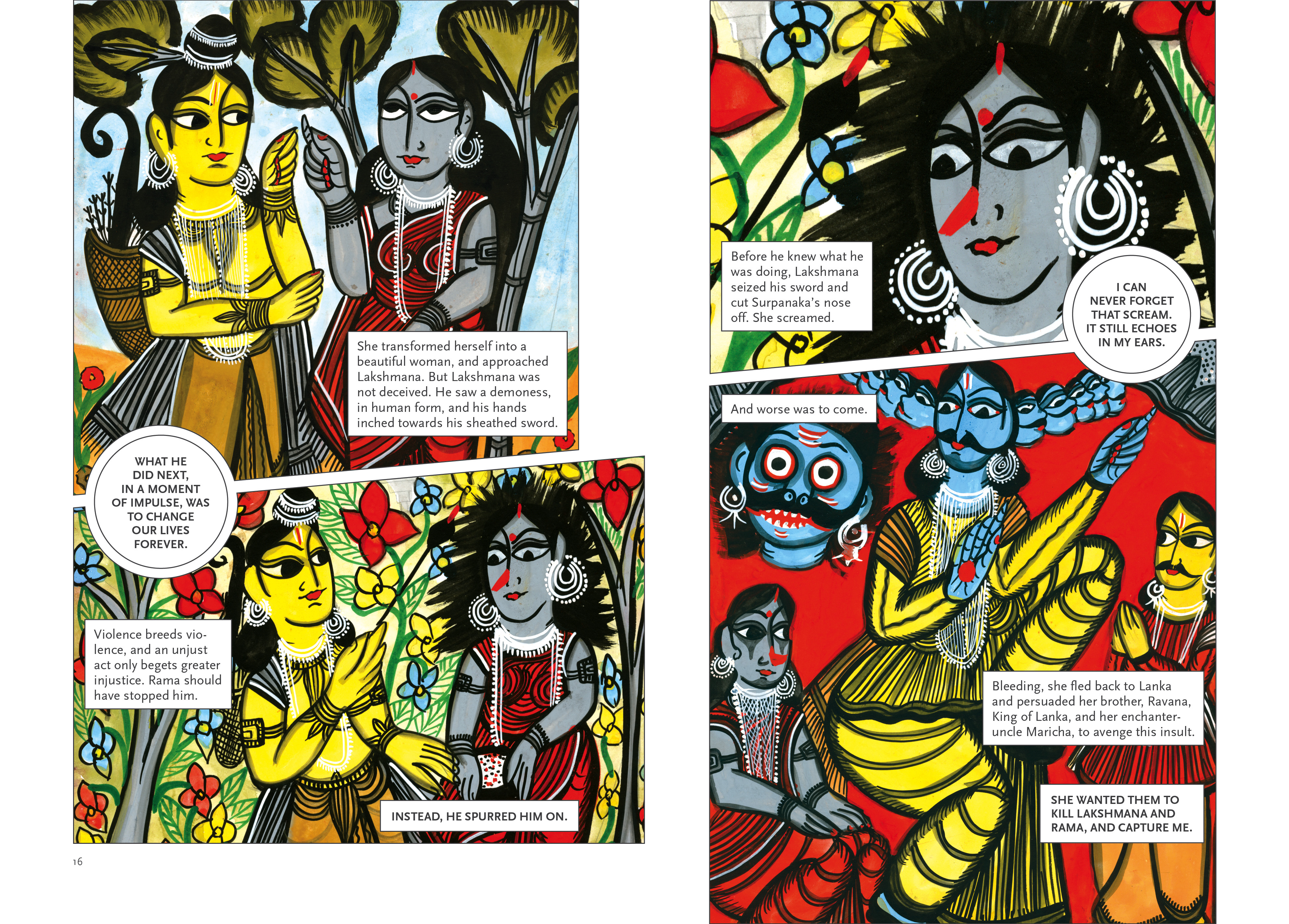 Samhita Arni was Tara's youngest author - they published her version of the great epic Mahabharatha in 1996, when she was 12. The book, which she wrote and illustrated, has been published in seven languages. She has since studied film and religion at Mount Holyoke College in Massachusetts, US, and is currently working with a Pakistani woman filmmaker. Moyna and Joydeb Chitrakar are performers and artists from the Patua scroll painting tradition of West Bengal. To watch a video of Moyna Chitrakar performing from the Ramayana scroll which inspired the book click here