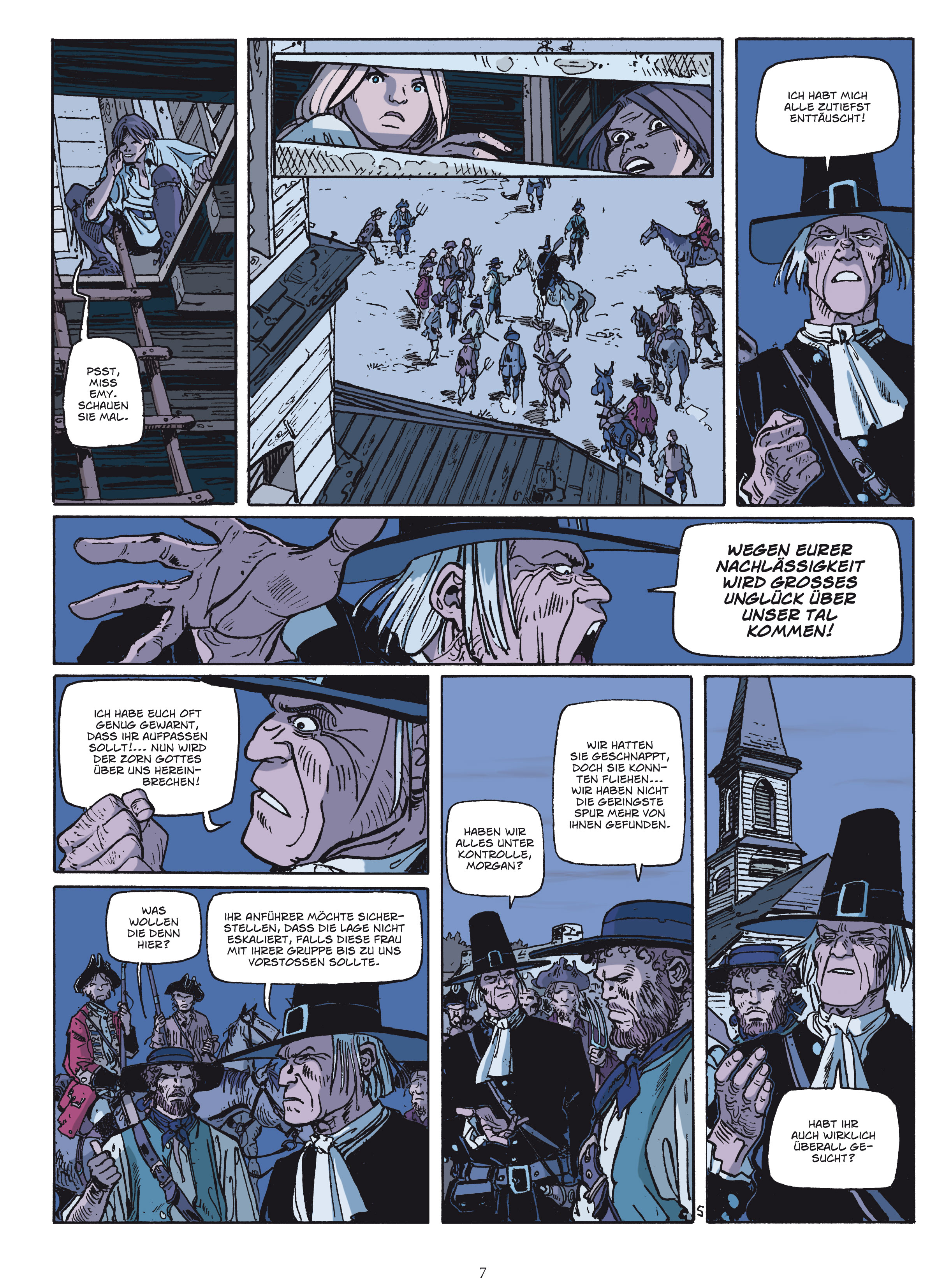 1755. Unter den Augen der Indianer streiten sich Engländer und Franzosen um die "Neue Welt". In diesem Umfeld macht sich eine junge Frau namens Emy auf die Suche nach ihren Kindern, die deren Vater, ein englischer Offizier, entführt hat.In einem kleinen Städtchen in dem abgelegenen Tal treibt ein sogenannter "Pastor" sein Unwesen. Emy und ihre Freunde beschließen, dem Gauner das Handwerk zu legen. Der aber scheint die Bewohner hinter sich zu haben. Zum Glück naht unerwartete Hilfe. Diese Story bildet den Abschlussband der Trilogie.