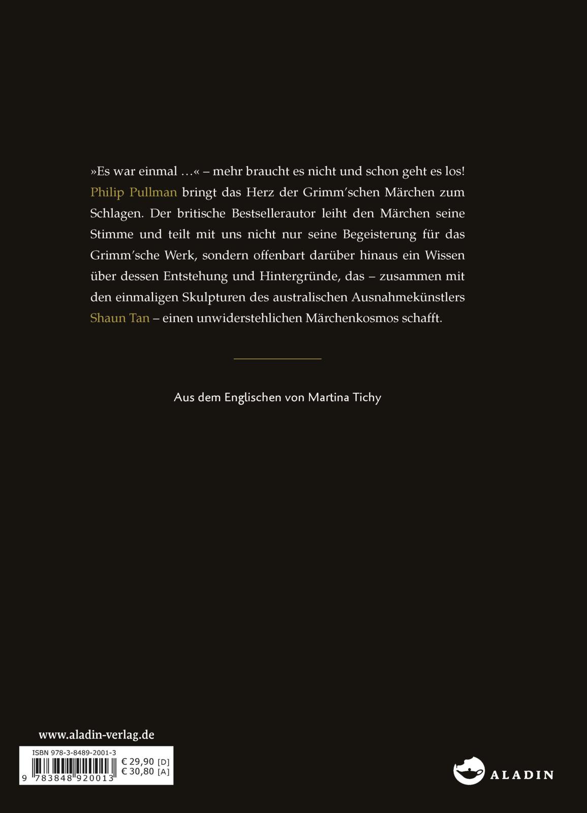 »Es war einmal ...« - mehr braucht es nicht und schon geht es los! Philip Pullman bringt das Herz der Grimm'schen Märchen zum Schlagen. Der britische Bestsellerautor leiht den Märchen seine Stimme und teilt mit uns nicht nur seine Begeisterung für das Grimm'sche Werk, sondern offenbart darüber hinaus ein Wissen über dessen Entstehung und Hintergründe, das - zusammen mit den einmaligen Skulpturen des australischen Ausnahmekünstlers Shaun Tan - einen unwiderstehlichen Märchenkosmos schafft.