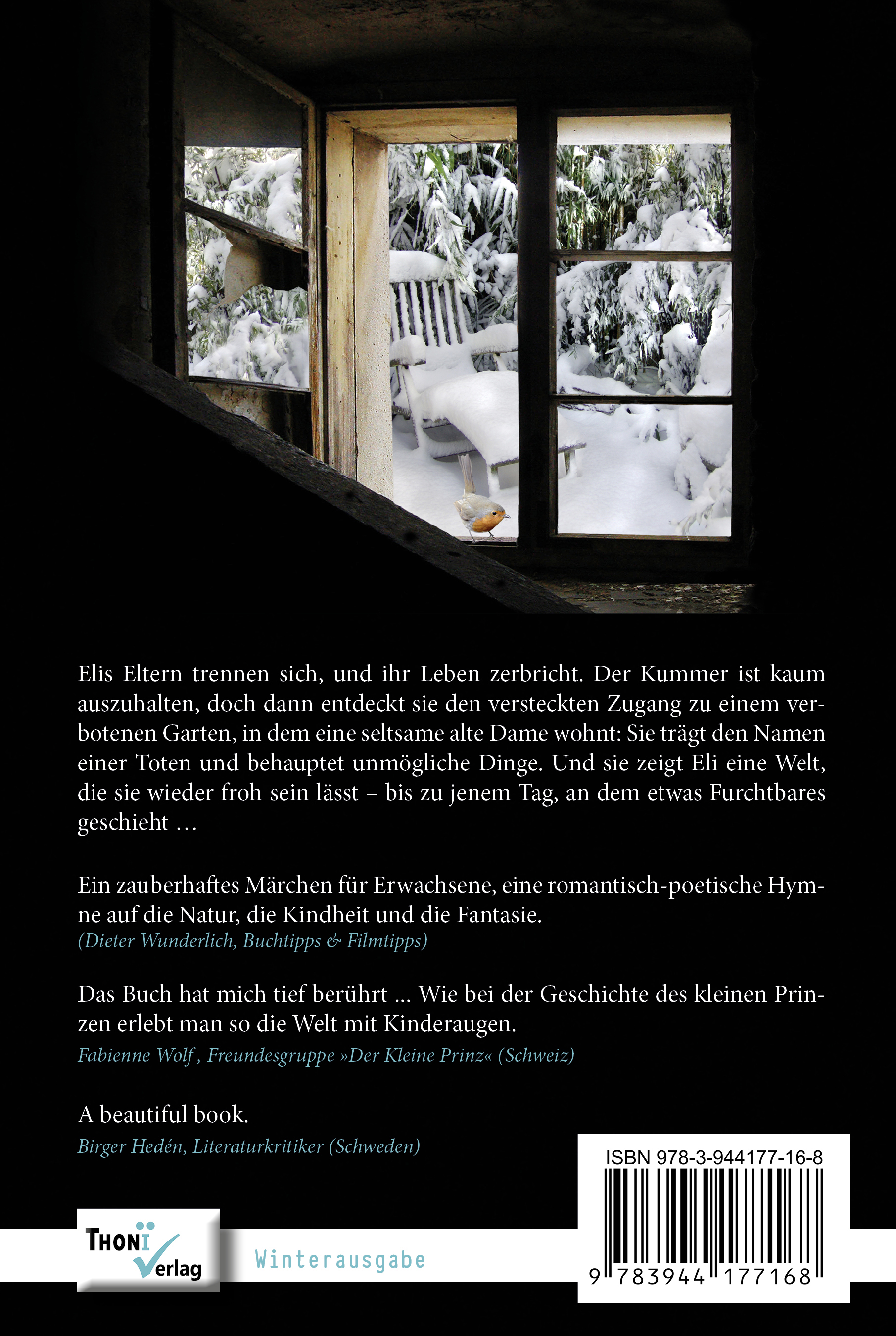 | Schlagworte | Bäume • Bücher zum Träumen • Buch für die Seele • Burnett • Claude Monet • Der alte Garten • Der kleine Prinz • Erinnerung • Familienroman • Fantasie • Freundschaft • Garten • Gartenroman • Garten; Romane/Erzählungen • Gartenzauber • geheimer Garten • Geheimnis • Geschenkbuch • Graphic Novel • Kaschnitz • Kindheit • Kindheit; Romane/Erzählungen • Künstlergarten • Magischer Realismus • Märchen • Märchenbuch für Erwachsene • Märchenroman • Max Liebermann • Mystik • Mystisch • Mythen • Natur • Nikola Hahn • poetischer Roman • Scheidung • Seelenbuch • Textausgabe • Thoni • Tod • Trauer • Traum • Trostbuch • Verbotener Garten • Wintergarten • Wohlfühlroman • Zaubergarten |