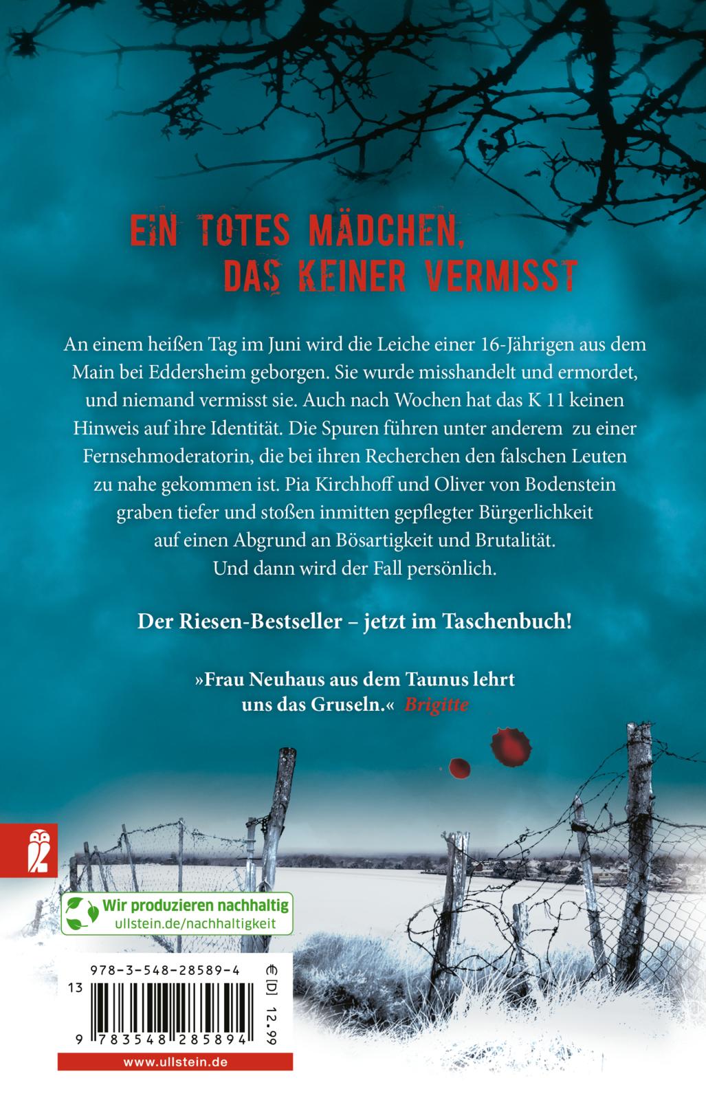 Die Spuren führen unter anderem zu einer Fernsehmoderatorin, die bei ihren Recherchen den falschen Leuten zu nahegekommen ist. Pia Kirchhoff und Oliver von Bodenstein graben tiefer und stoßen inmitten gepflegter Bürgerlichkeit auf einen Abgrund an Bösartigkeit und Brutalität. Und dann wird der Fall persönlich.