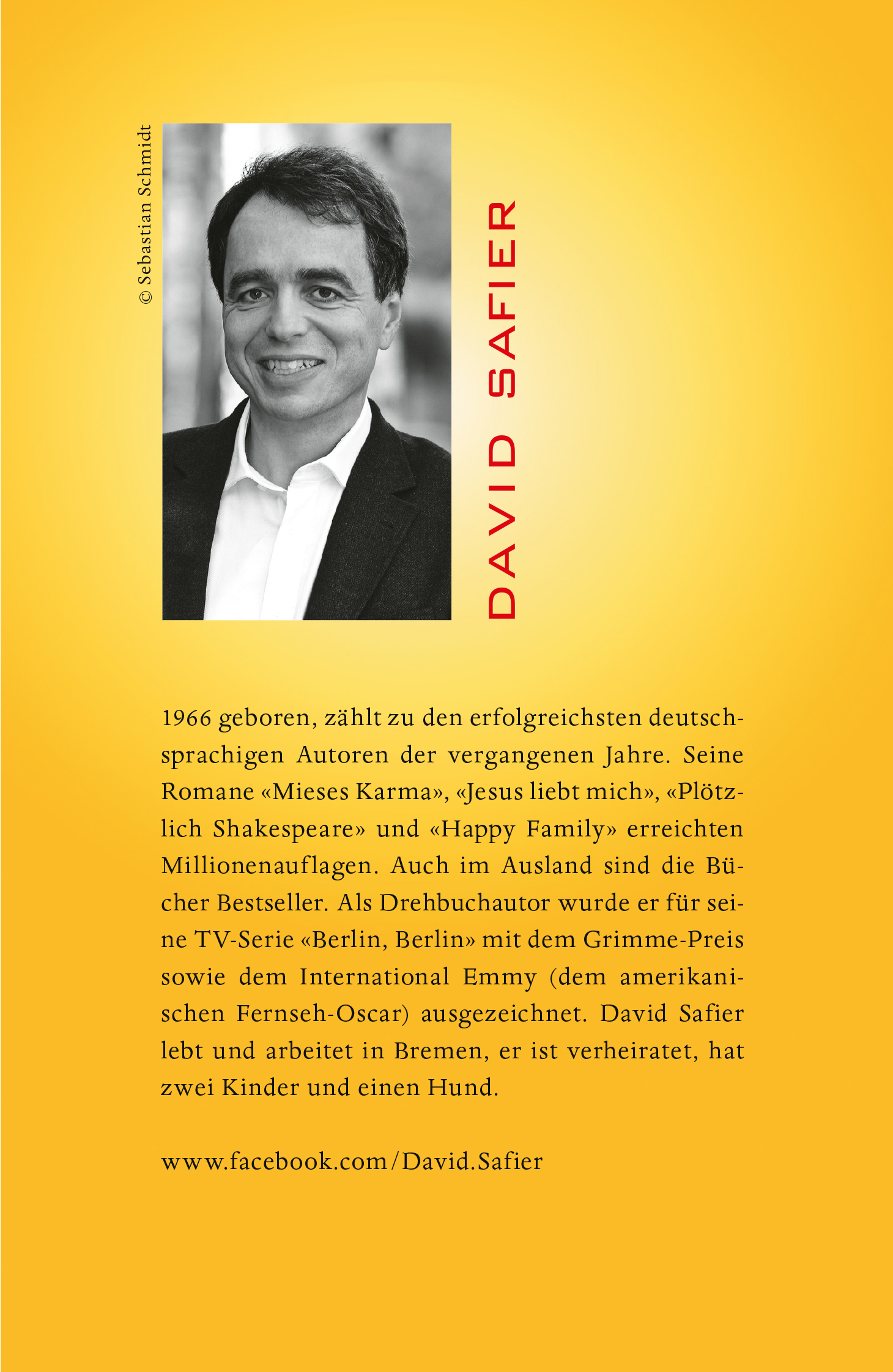 David Safier, 1966 geboren, zählt zu den erfolgreichsten Autoren der letzten Jahre. Seine Romane, darunter «Mieses Karma», «Jesus liebt mich», «Happy Family» und «MUH!» erreichten Millionenauflagen im In- und Ausland. Der erste Band seiner Krimireihe rund um die Ex-Kanzlerin gehört zu den bestverkauften Büchern des Jahres 2021. Als Drehbuchautor wurde David Safier unter anderem mit dem Grimme-Preis sowie dem International Emmy ausgezeichnet. Er lebt und arbeitet in Bremen, ist verheiratet und hat zwei Kinder.