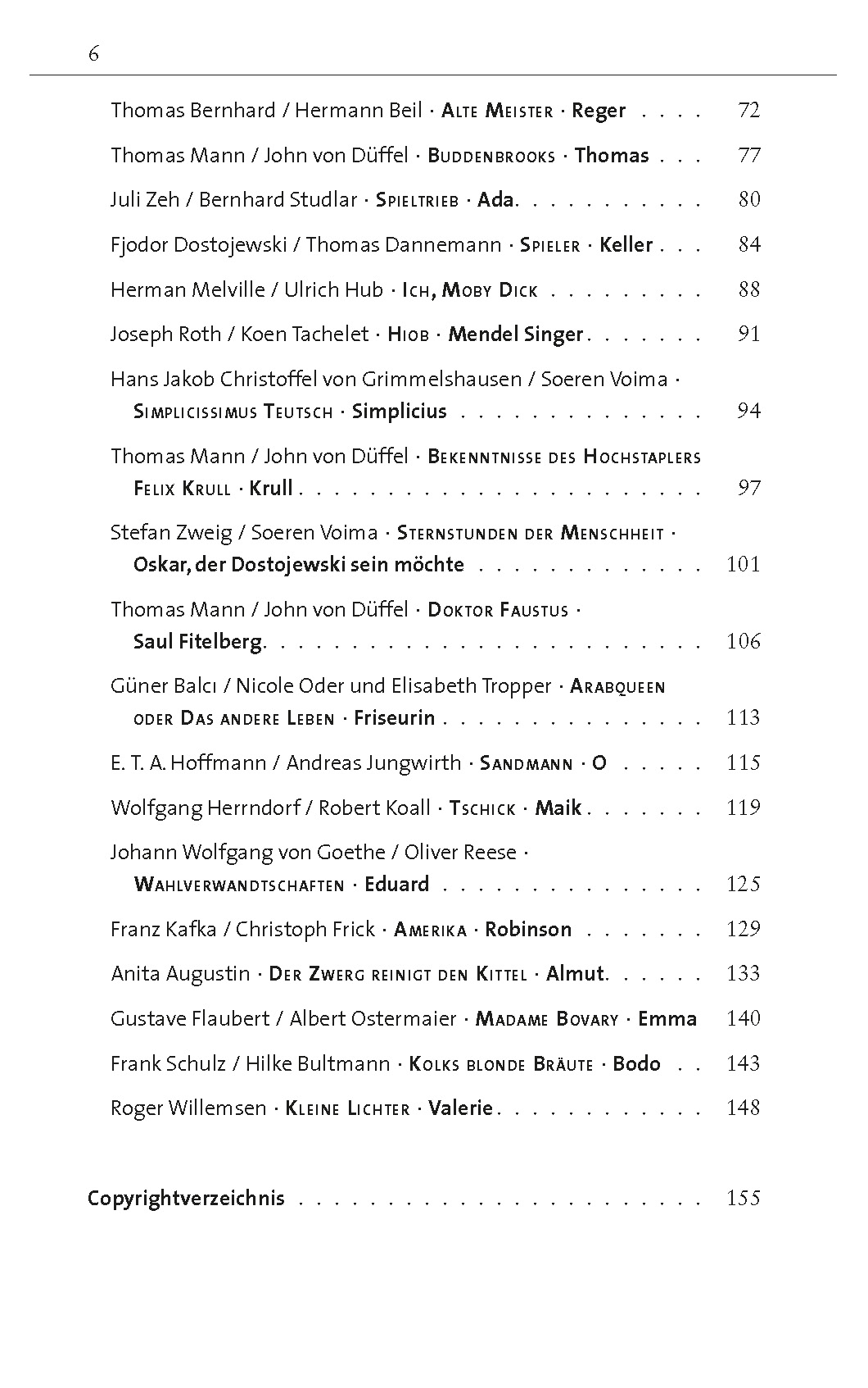 Mit Texten von u.a.: Wolfgang Herrndorf, Juli Zeh, Ildikó von Kürthy, Ingo Schulze, Thomas Mann, Fjodor Dostojewski.