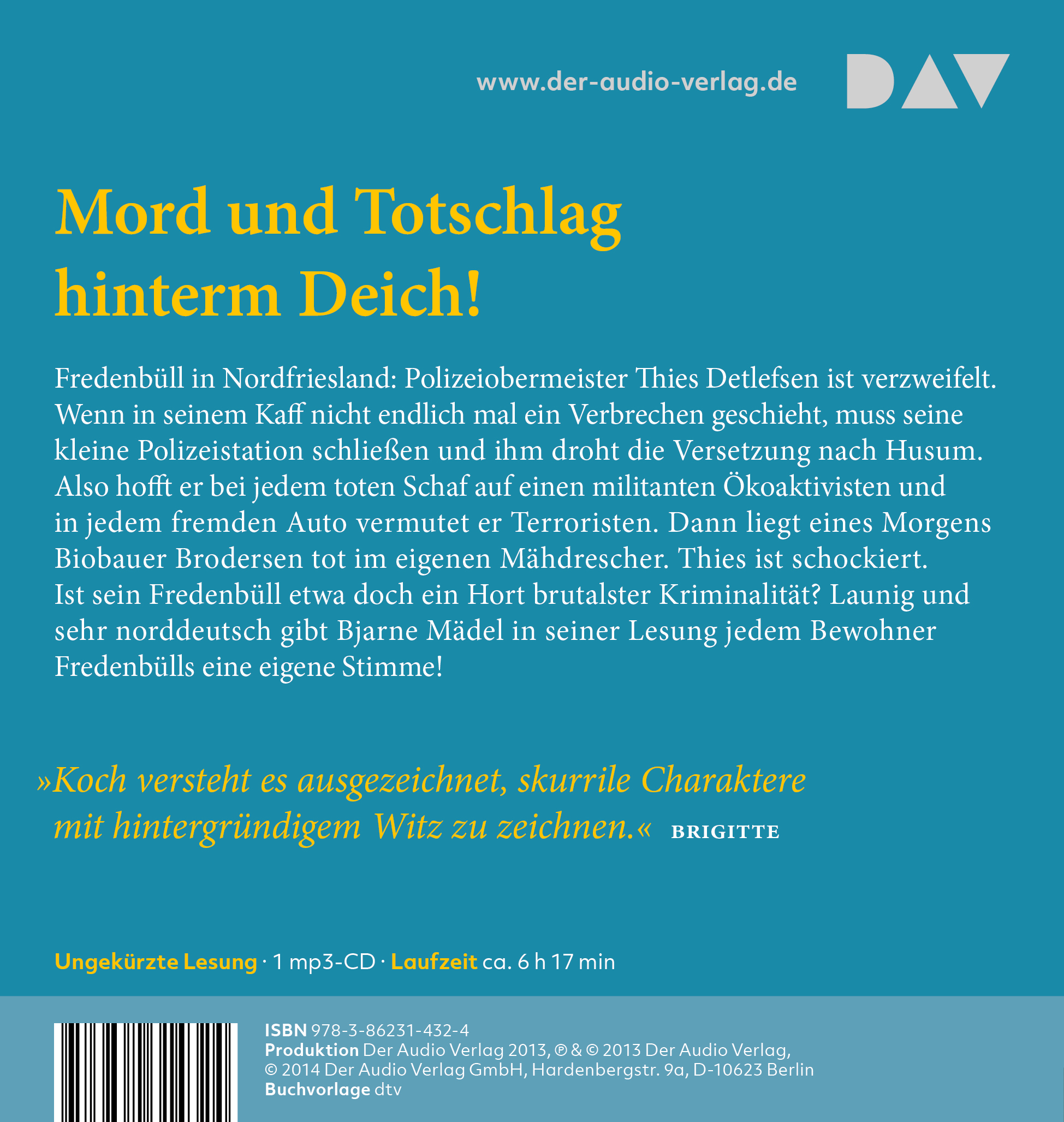 | Schlagworte | 1. Fall • Dorf • Ermittlungen • Hörbuch • Hörbuch; Krimis/Thriller-Lesung • Humor • Krimi • Kriminalität • Kriminalroman • Leiche • Mord • Nordfriesland • Nordfriesland; Krimis/Thriller • Nordsee • Nordseekrimi • Polizei • Polizist • Regionalkrimi • Roman • Thies Detlefsen • Verbrechen |