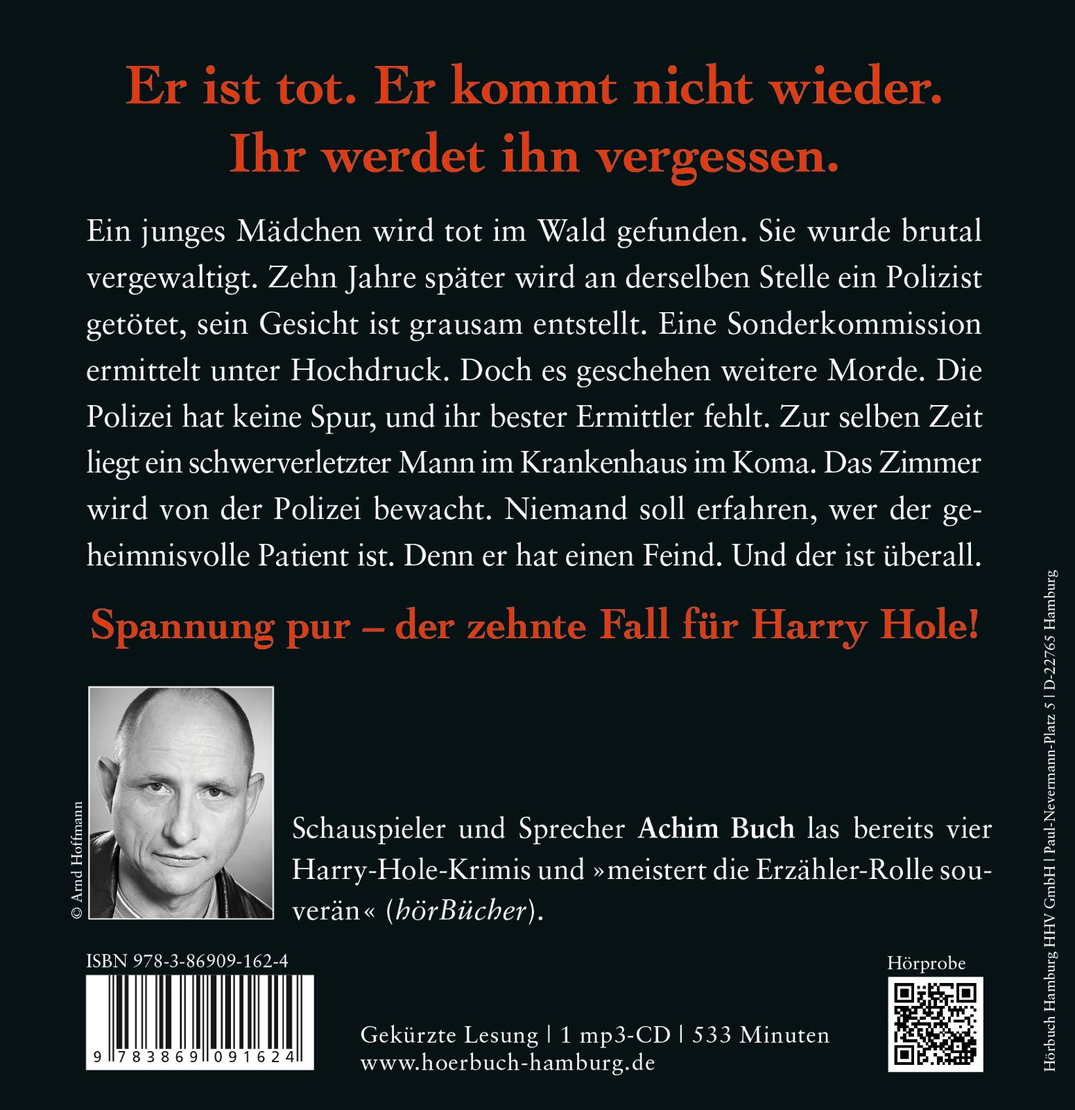 Achim Buch studierte an der Folkwang-Hochschule Essen und war an Theaterbühnen in Frankfurt, Hamburg und Freiburg engagiert. Als freier Schauspieler gastiert er unter anderem in Dresden, München und Berlin. Er wirkt zudem in Serien wie »Tatort« oder »Küstenwache« mit. Als Hörbuchsprecher ist er wegen seiner tiefen Stimme vor allem bei Krimi-Fans beliebt. Er beherrscht aber auch spielend die Interpretation literarischer und humorvoller Texte.