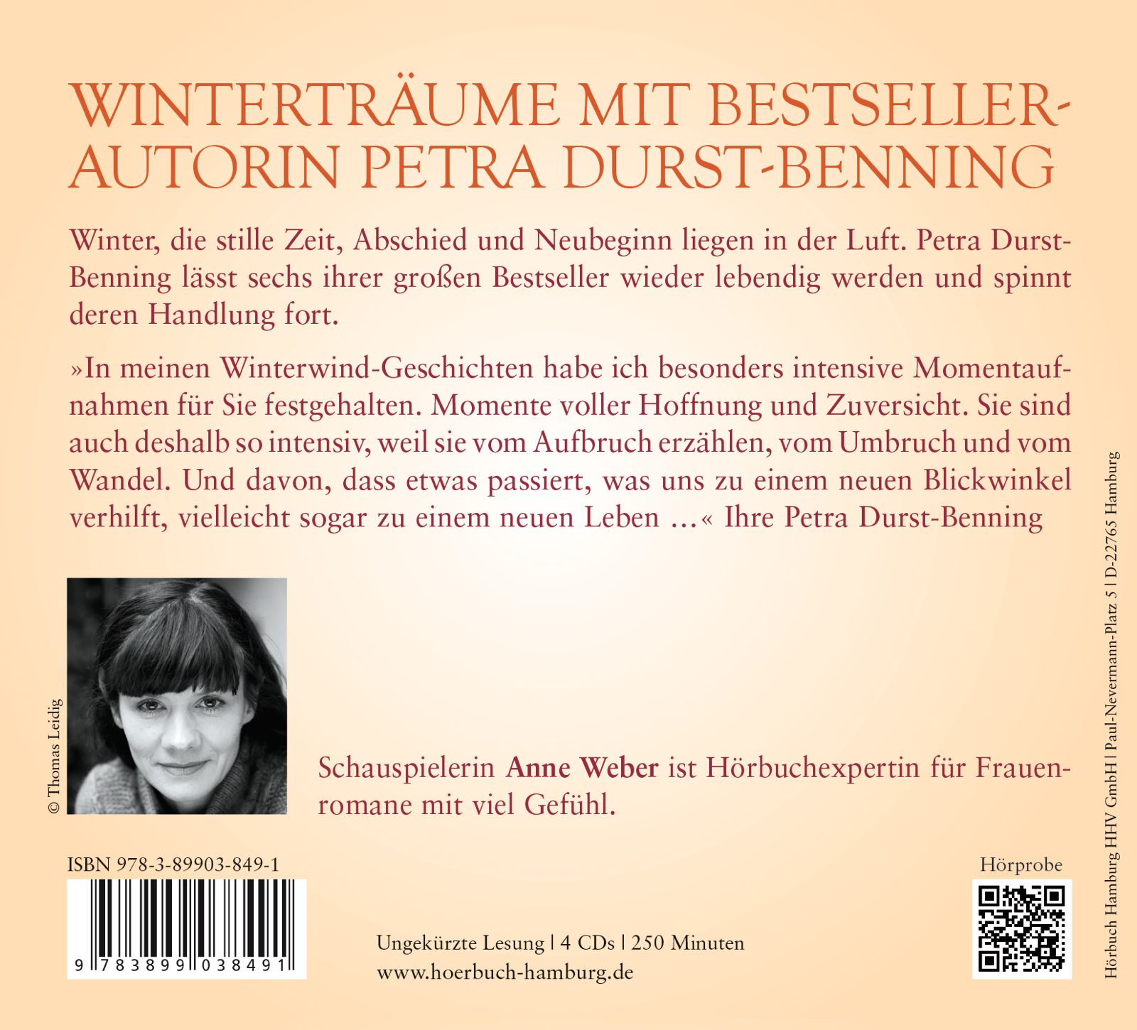 | Schlagworte | Aufbruch • Familie • Frauenroman • Gesellschaft • Herkunft • Historischer Roman • Hörbuch • Hörbuch; Historische Romane/Erzählungen • Hörbuch; Literaturlesung • Liebe • Neubeginn • Schicksal • Stuttgart • Thüringen • Wintergeschichten |