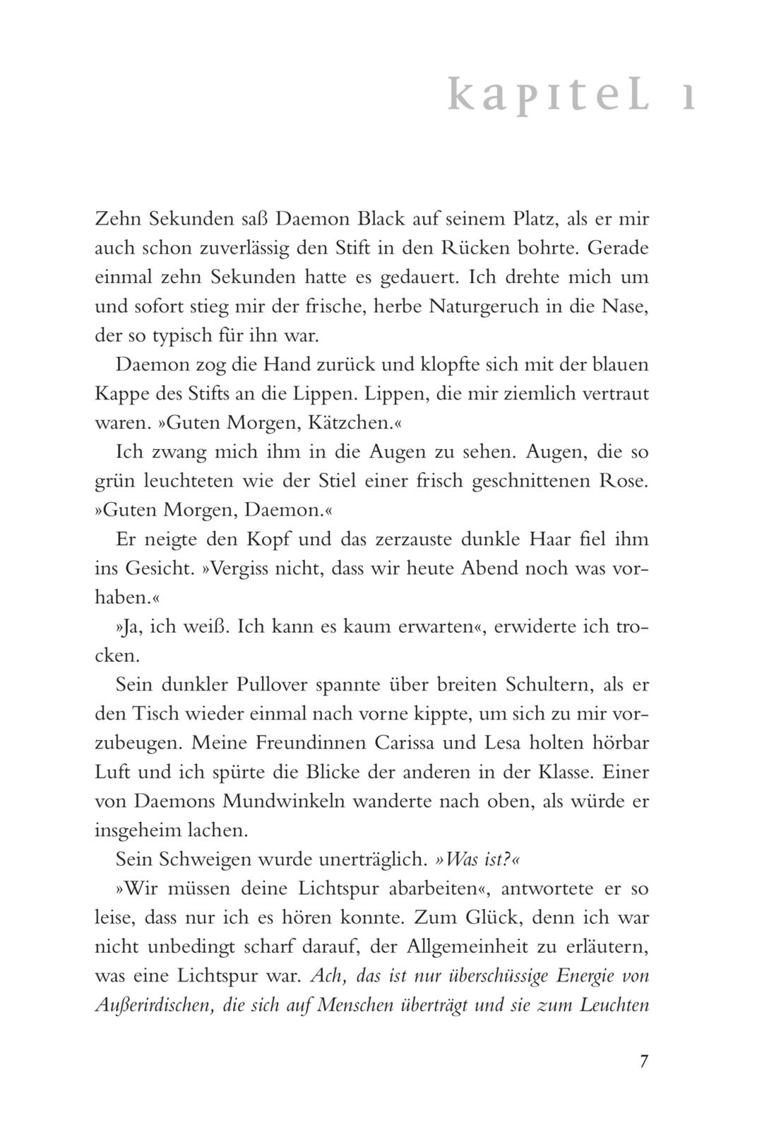 Seit Daemon Katy geheilt hat, sind sie für immer miteinander verbunden. Doch heißt das, dass sie auch füreinander bestimmt sind? Auf keinen Fall, findet Katy und versucht sich gegen ihre Gefühle zu wehren. Das ist allerdings gar nicht so einfach, denn Daemon ist nun fest entschlossen, sie für sich zu gewinnen. Dann taucht ein neuer Mitschüler auf - und mit ihm eine dunkle Gefahr. Katy weiß nicht mehr, wem sie trauen kann. Was geschah mit Daemons Bruder? Welche Rolle spielt das zwielichtige Verteidigungsministerium? Und wie lange wird sie Daemons enormer Anziehungskraft noch widerstehen können?
