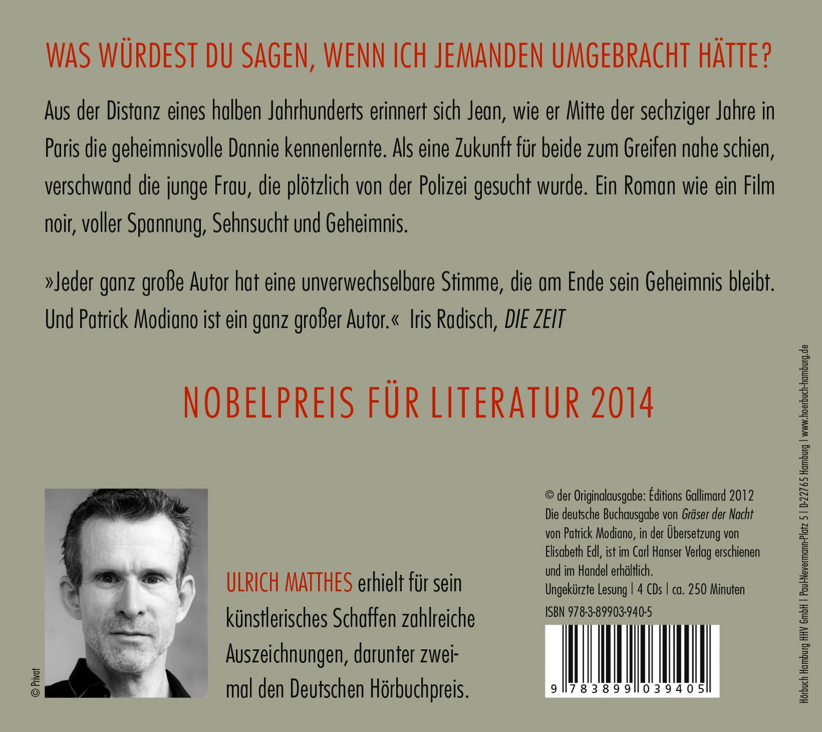 | Schlagworte | 1960er Jahre • Erinnerungen • Frankreich • Geheimnis • Hörbuch • Hörbuch; Literaturlesung • Im Cafe der verlorenen Jugend • Liebesgeschichte • Liebesroman • Literatur Hörbuch • Literaturnobelpreis • Nobelpreisträger • Paris • Paris; Romane/Erzählungen • Ungekürzte Lesung |