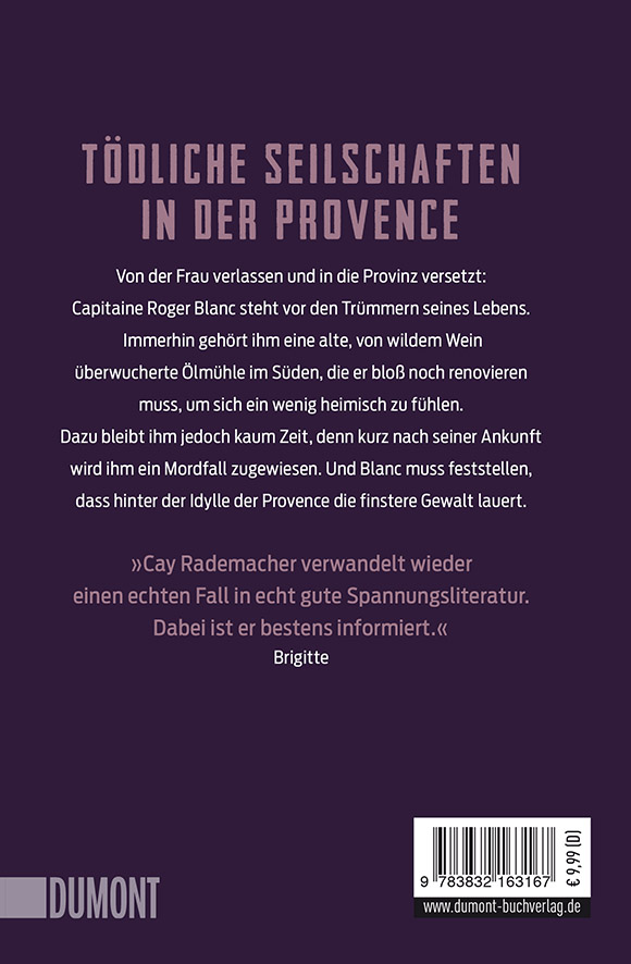 »Die Handlung ist so originell wie die Figuren. Zwischen den Zeilen glaubt man sogar die Düfte der Provence zu riechen. (...) Wie schön, dass Blanc weitere Fälle lösen wird.« KÖLNER STADTANZEIGER »Spannend, vielschichtig und mit einer charismatischen Hauptfigur ausgestattet - höchst lesenswert.« Eckart Baier, BUCHJOURNAL »Der Erzählstil, die Dialoge, der Verlauf der Handlung sind einfach stimmig - das ist mehr als gute Krimi-Unterhaltung.« Andreas Trojan, BÖRSENBLATT »Cay Rademacher's Murderous Mistral is a perfect getaway mystery.« NEW YORK TIMES BOOK REVIEW »Cay Rademacher ist eine Verneigung vor seiner Lieblingsgegend und eine gut gebaute Korruptionsgeschichte gelungen.« Peter Pisa, KURIER »Eine wunderbare Urlaubslektüre.« Elke Janssen, LÜNEBUCH - DAS MAGAZIN »Dringender Appell: Dieses Buch gehört unbedingt mit in den Urlaubskoffer [...] Rademacher erweckt die Provence mit ihrer Landschaft und ihren Bewohnern zum Leben.« KÖLNER ILLUSTRIERTE »Cay Rademacher verwandelt wieder einen echten Fall in echt gute Spannungsliteratur. Dabei ist er bestens informiert.« BRIGITTE »Was dieses Buch am meisten mit Badeurlaub gemeinsam hat, ist die große Frage am Ende: Wenn doch alles so gemächlich war - warum ist dann schon wieder alles vorbei?« Maren Keller, SPIEGEL ONLINE