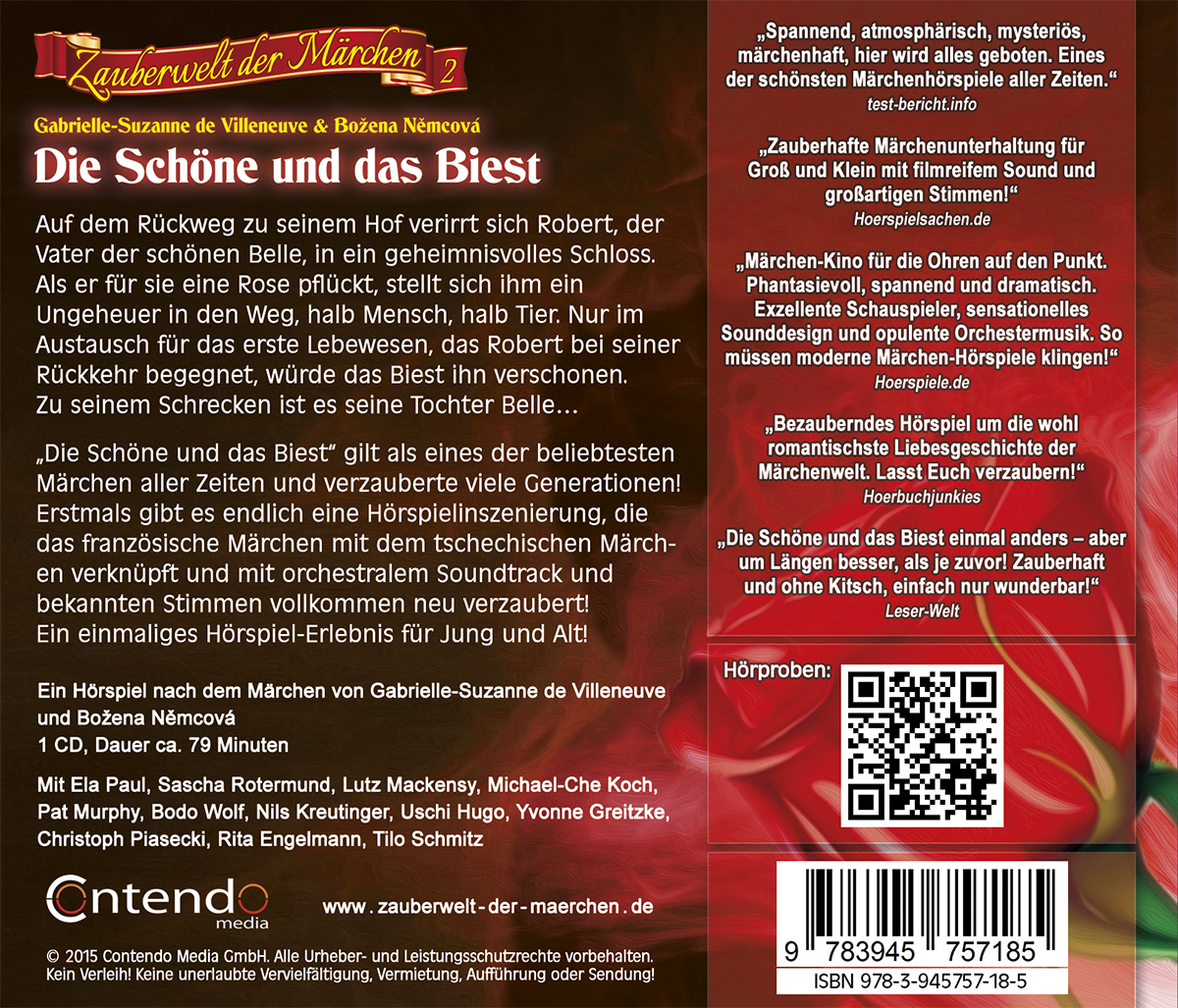 Nach dem großen Erfolg des Märchenhörspiels »Drei Haselnüsse für Aschenbrödel« verzaubert Contendo Media, das Team hinter den hochgelobten und mehrfach prämierten Kinder- und Jugendserien »Team Undercover« und »Potz Blitz – Die Zauber-Akademie«, erneut mit der Adaption eines der beliebtesten und romantischsten Märchen aller Zeiten: »Die Schöne und das Biest«.