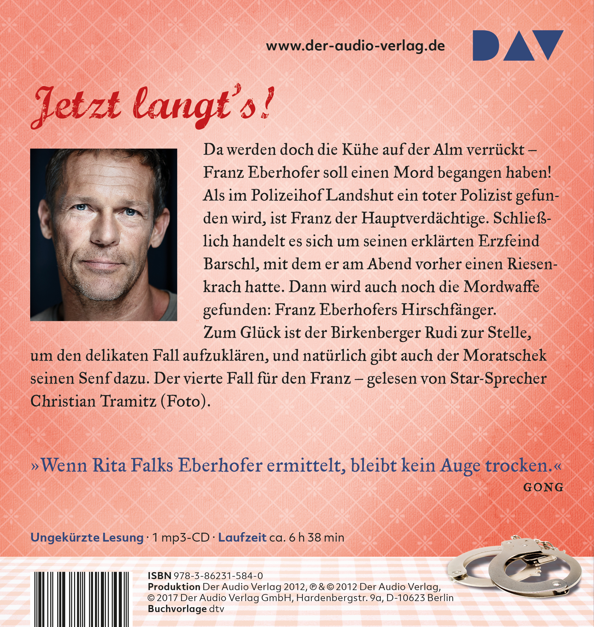 Christian Tramitz, geboren in München, spielte mit Bully Herbig in der preisgekrönten »Bullyparade« und erreichte mit seiner Rolle des Rangers in »Der Schuh des Manitu« Kultstatus. Er ist regelmäßig im Fernsehen zu sehen, beispielsweise in der beliebten ARD-Krimiserie »Hubert ohne Staller«. Christian Tramitz liest für DAV und eine riesige Fangemeinde alle Teile der Hörbuch-Reihe um Franz Eberhofer ein.
