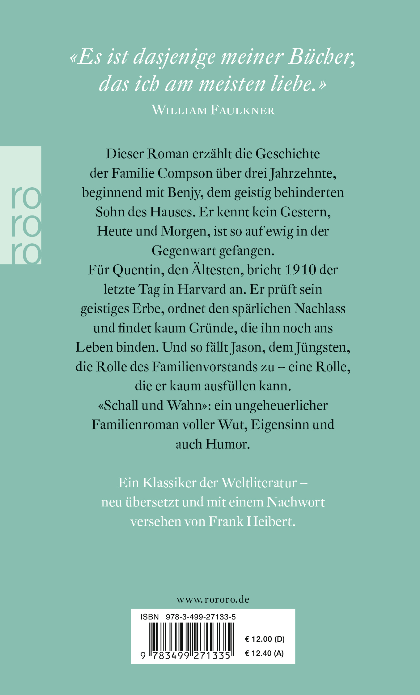 Wenn William Faulkner der amerikanische Joyce ist, dann ist «Schall und Wahn» sein Ulysses ... und Frank Heiberts Neuübersetzung ein echter Quantensprung. Neue Zürcher Zeitung