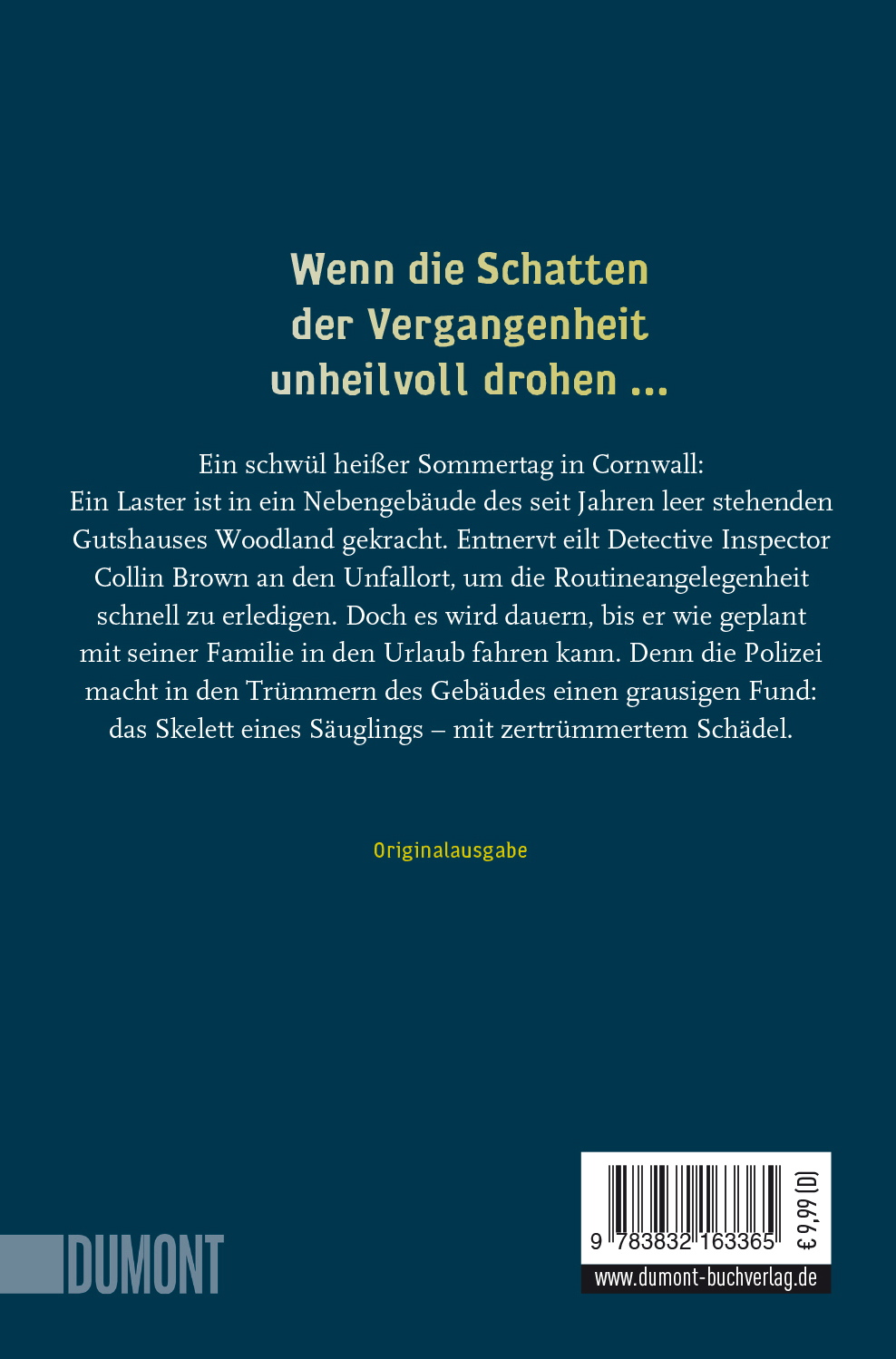 DI Collin Brown glaubt es an diesem heißen Sommertag lediglich mit einem außergewöhnlichen Unfall zu tun zu haben: Ein Laster ist in ein Nebengebäude des seit Jahren leer stehenden Gutshauses Woodland gekracht. Doch aus der Routineangelegenheit entwickelt sich schnell ein brisanter Mordfall - nach Bergung des Lasters wird das Skelett eines Säuglings in dem stark beschädigten Gebäude gefunden, mit zertrümmertem Schädel.