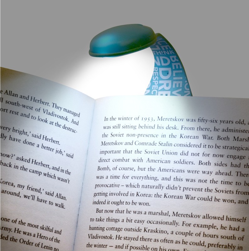 Diese Leselampe eignet sich ideal für das Lesen im Bett durch den flexiblen Kopf und eine helle Ausleuchtung. Sie lässt sich in jedes Buch einstecken und kann als Lesezeichen im Buch bleiben. Erhältlich in drei verschiedenen Designs.