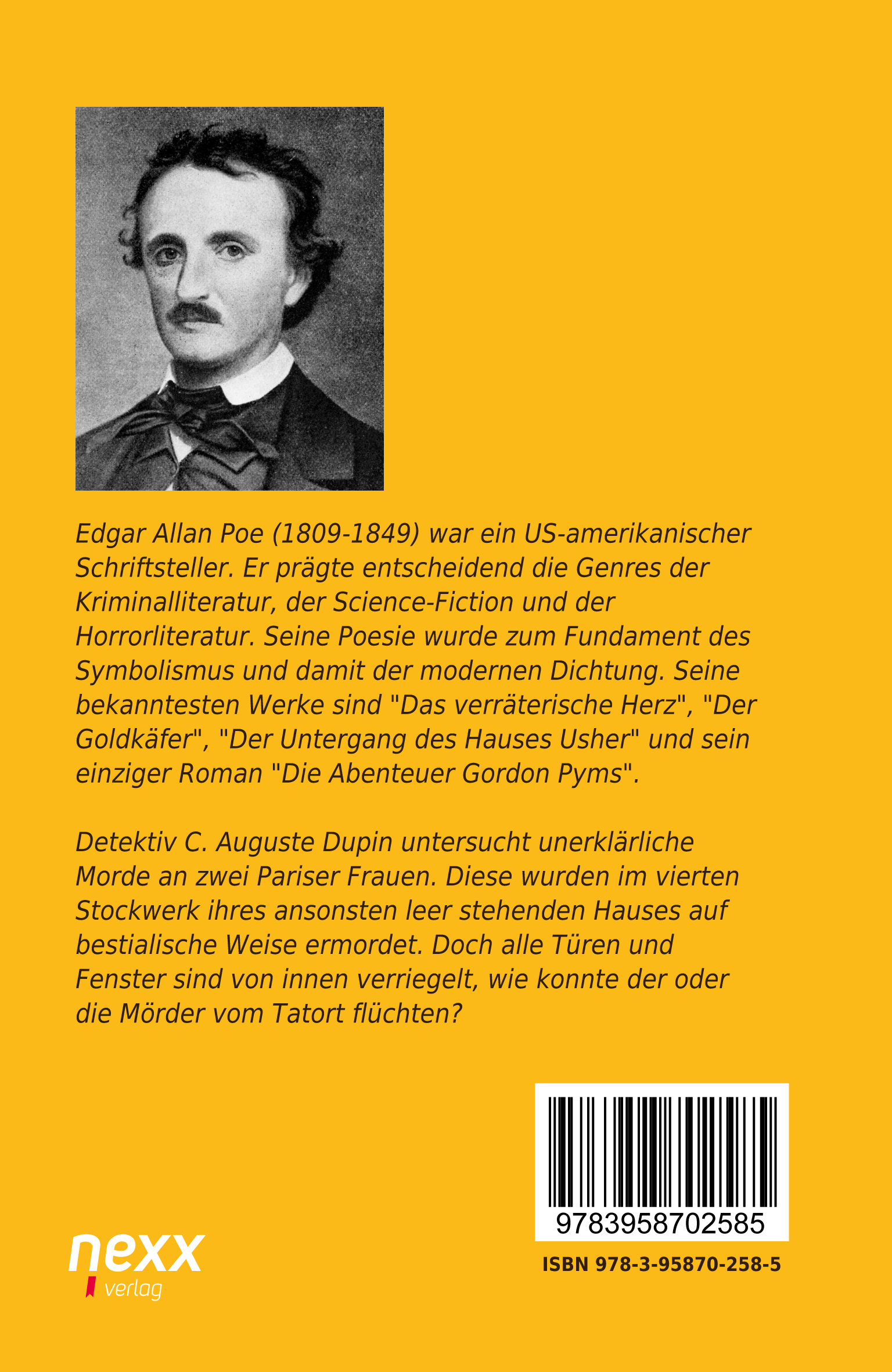 | Schlagworte | Detektivgeschichte • Dupin • Ermittlung • Frauenmorde • Grauen • Krimi • Kurzgeschichte • Orang-Utan • Paris • Polizei • Spannung • Verbrechen |