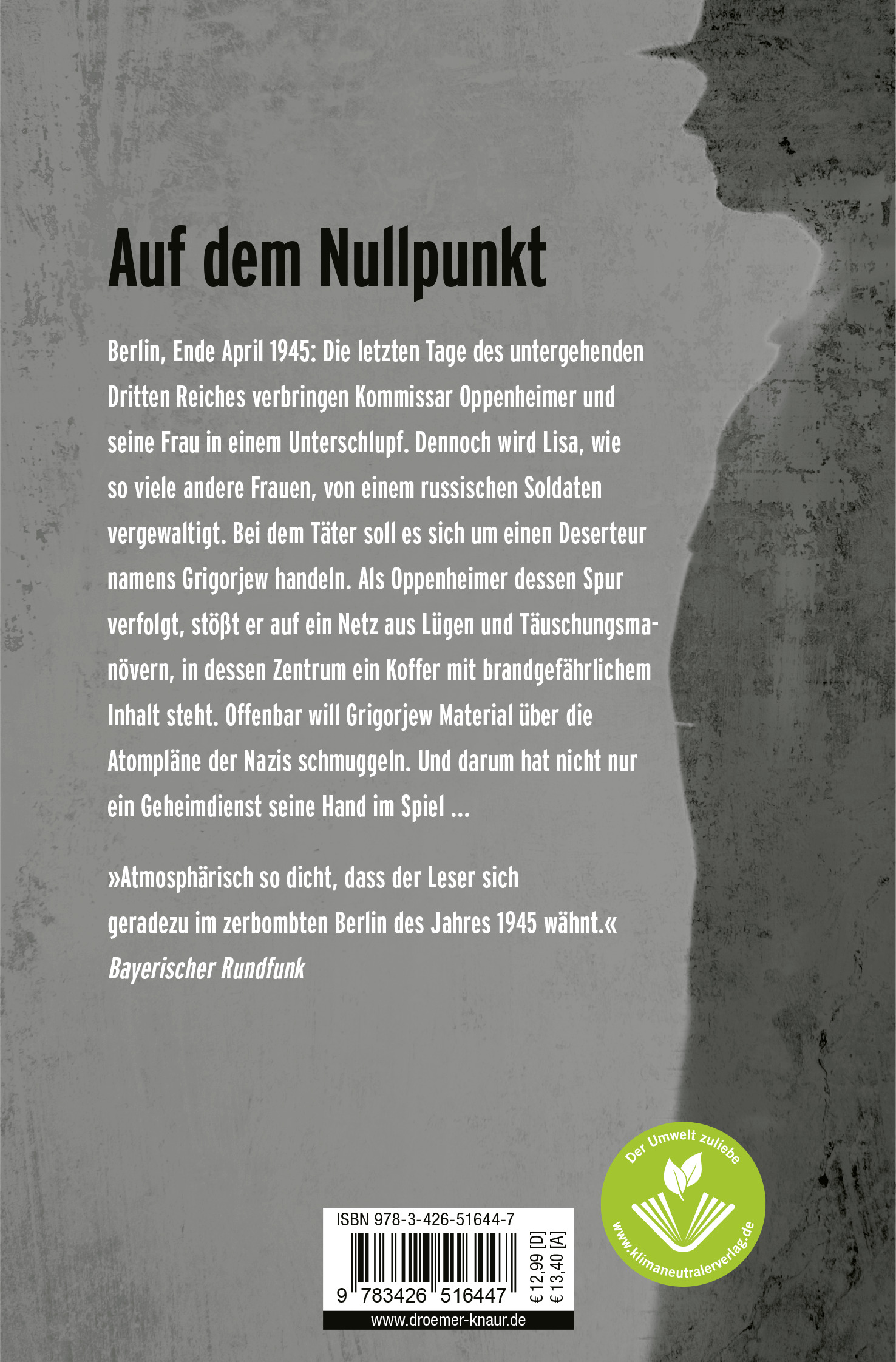 Berlin, Ende April 1945: Die letzten Tage des Dritten Reichs verbringen Kommissar Oppenheimer und seine Frau Lisa in einem Unterschlupf des Ganoven Ede. Doch in den chaotischen Wirren der Niederlage werden sie getrennt. Als Oppenheimer in Edes Auftrag einen verschwundenen Schuldner aufspüren soll, bekommt er unverhofft einen Hinweis auf Lisas Vergewaltiger, den russischen Deserteur Grigorjew. Er stößt auf ein Netz aus Lügen und Täuschungsmanövern, in dessen Zentrum ein Koffer mit brandgefährlichem Inhalt steht. Denn auch andere Mächte sind hinter Grigorjew her. Offenbar sollte er Material schmuggeln, das bei den Atomplänen der Nazis eine Rolle spielte. Und Oppenheimer weiß mehr von der Affäre, als er zunächst ahnt.