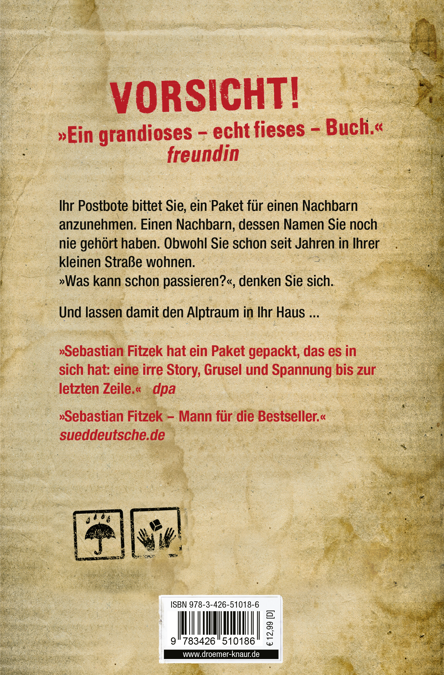"Sebastian Fitzek hat ein Paket gepackt, das es in sich hat: eine irre Story, Grusel und Spannung bis zur letzten Zeile."