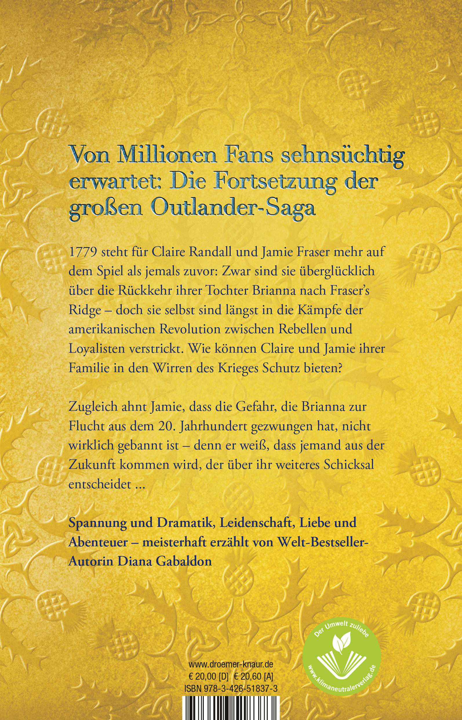 1779 steht für Claire Randall und Jamie Fraser mehr auf dem Spiel als jemals zuvor: Zwar sind sie überglücklich über Briannas Heimkehr - doch niemand weiß, ob die Gefahr, die ihre Tochter mit Mann und Kindern zur Flucht aus dem 20. Jahrhundert gezwungen hat, wirklich gebannt ist. Wie können Claire und Jamie ihrer Familie inmitten des amerikanischen Unabhängigkeitskrieges Schutz bieten?