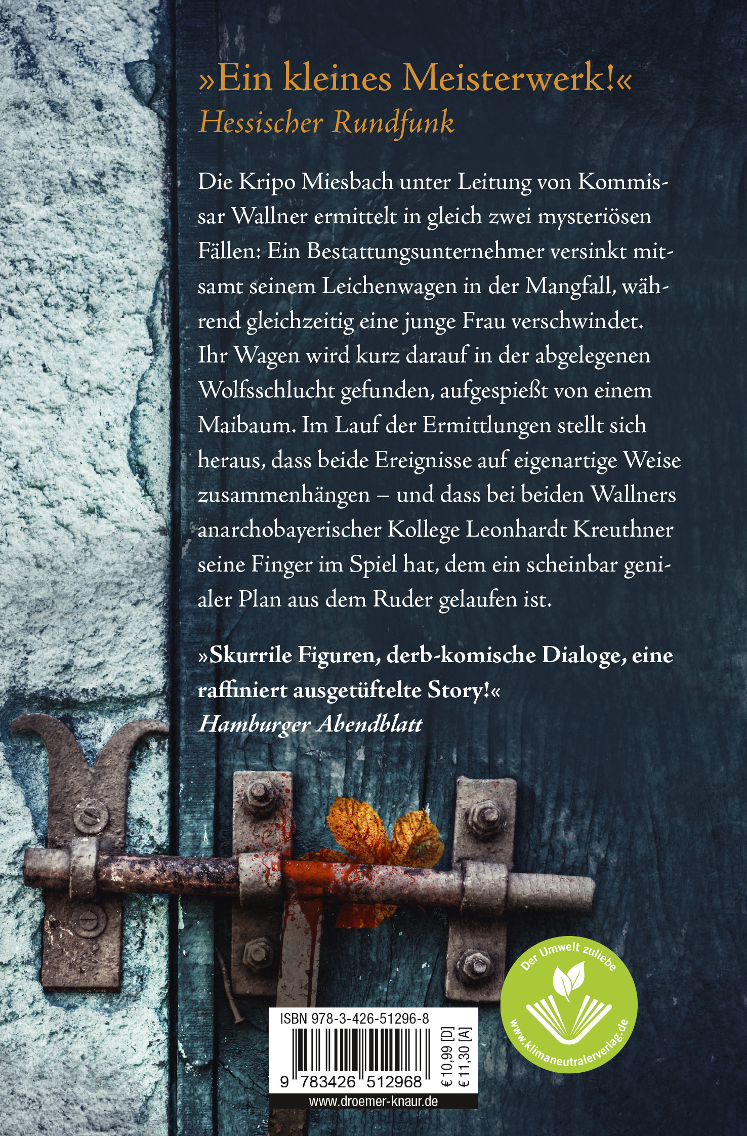 während gleichzeitig eine junge Frau aus Warngau verschwindet. Ihr Wagen wird kurz darauf in der abgelegenen Wolfsschlucht gefunden - aufgespießt von einem Maibaum. Im Lauf der Ermittlungen stellt sich heraus, dass beide Ereignisse auf eigenartige Weise zusammenhängen - und dass bei beiden Wallners anarcho-bayerischer Kollege Leonhardt Kreuthner seine Finger im Spiel hat, dem ein scheinbar genialer Plan aus dem Ruder gelaufen ist. Hat Kreuthner es diesmal zu weit getrieben? Und was hat das Verschwinden von Bianca Stein damit zu tun?