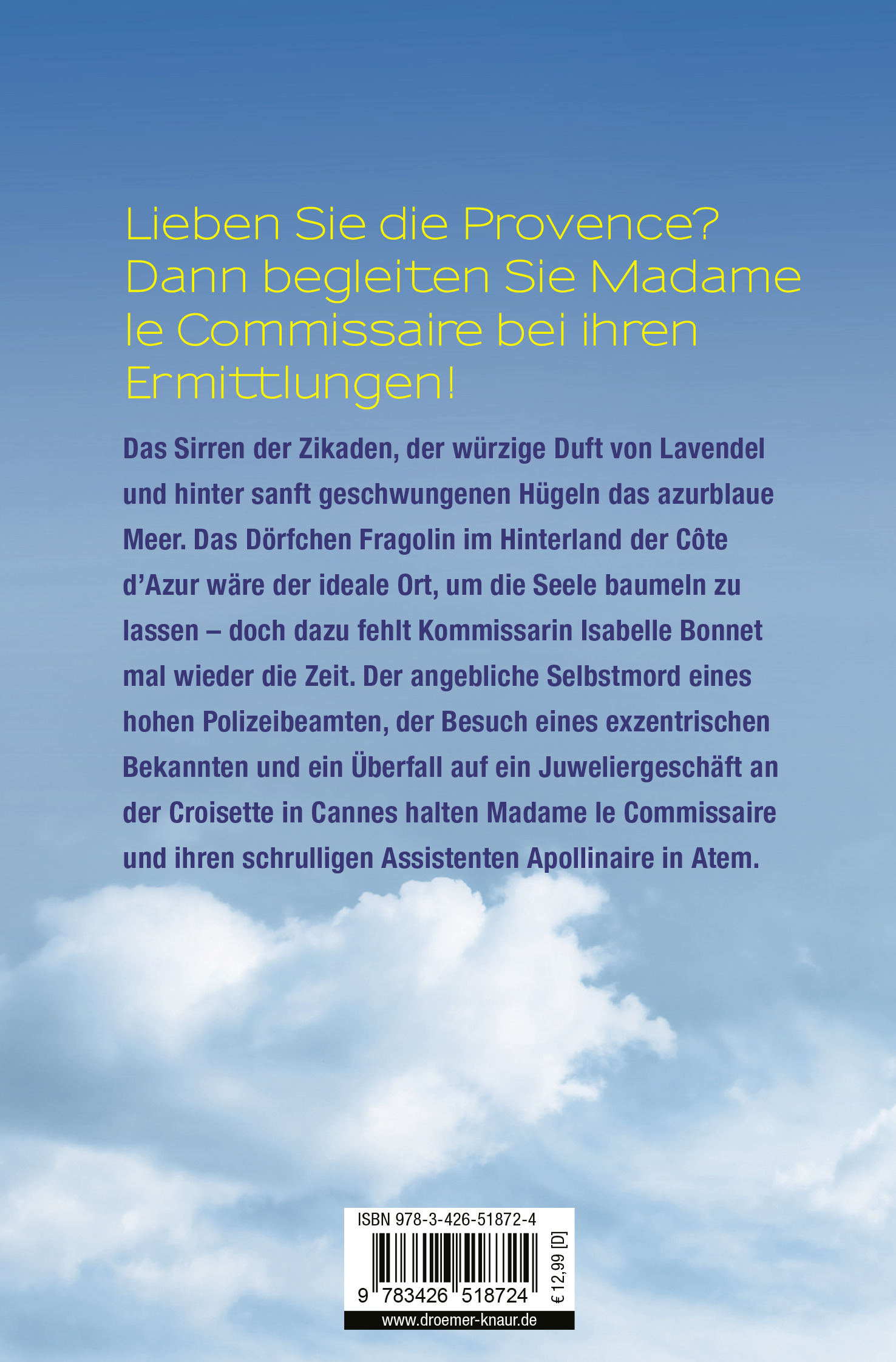 Die Provence-Krimis mit Madame le Commissaire - mehr Frankreich und Côte d'Azur geht nicht: der Duft von Lavendel, sanft geschwungene Hügel und das azurblaue Meer, dazu das "leichte Leben" mit gutem französischen Essen, dem Verweilen in Cafés und Brasserien. Gepaart mit der spannenden und unterhaltsamen Ermittlungsarbeit von Isabelle Bonnet ist dieser dritte Provence-Krimi von Pierre Martin die perfekte Sommerlektüre - nicht nur für Liebhaber der Côte d'Azur.