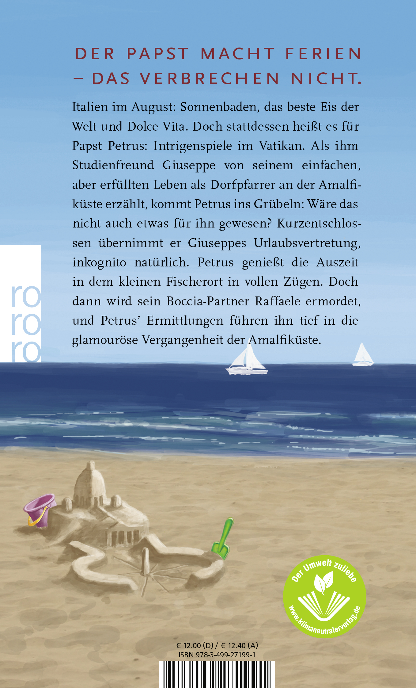Italien im August: Sonnenbaden, das beste Eis der Welt und Dolce Vita. Doch stattdessen heißt es für Papst Petrus: Intrigenspiele im Vatikan. Als ihm Studienfreund Giuseppe von seinem einfachen, aber erfüllten Leben als Dorfpfarrer an der Amalfiküste erzählt, kommt Petrus ins Grübeln: Wäre das nicht auch etwas für ihn gewesen? Kurzentschlossen übernimmt er Giuseppes Urlaubsvertretung, inkognito natürlich. Petrus genießt die Auszeit in dem kleinen Fischerort in vollen Zügen. Doch dann wird sein Boccia-Partner Raffaele ermordet, und Petrus' Ermittlungen führen ihn tief in die glamouröse Vergangenheit der Amalfiküste.