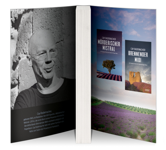| Schlagworte | Bannalec • Brennender Midi • Bretonische Flut • Bretonisches Gold • Camargue • Capitaine Roger Blanc • Charlotte Link • Der Schieber • Der Trümmermörder • Der Trümmermörder • Dunkles Arles • Enthüllung • Enthüllung • Ermittlungen • Frankreich • Französische Krimi & Thriller • Französische Krimis & Thriller • Französische Krimis & • Französische Krimis & Thriller • Gefährliche Côte Bleue • Gefährliche Côte Bleue • Journalismus • Krimi • Krimi & • Krimi & Thriller • Krimi Frankreich • Kriminalliteratur • Kriminalroman • Krimi-Reihe • Krimireihe Frankreich • Krimireihe Rademacher • Krimi Sommer Provence • Kunst • Lavendel • Mord • Mörderischer Mistral • Mörderischer Mistral • Pierre Martin • Polizei • Polizist • Provence • Provence; Krimis/Thriller • Rademacher Band 2 • Reportage • Reporter • Roger Blanc • Roman • Sommerkrimi Frankreich • Stier • Thriller • Trümmermörder • Unfall • Urlaubskrimi • Verbrechen • Vincent van Gogh |