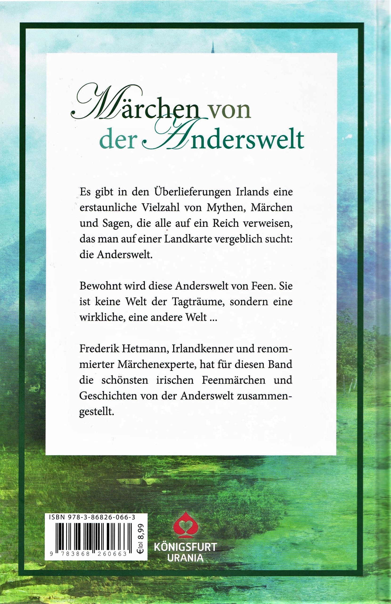 Es gibt in der Folklore Irlands eine erstaunliche Vielzahl von Mythen, Märchen und Sagen, die alle auf ein Reich verweisen, das man vergeblich auf einer Landkarte sucht, es heißt "Anderswelt". In den jeweiligen Texten hat es verschiedene Bezeichnungen, z. B. "Land der Ewigen Jugend", "Land hinter den Wellen", "Insel der Seligen" oder "Land der Frauen". Bewohnt wird die Anderswelt von den Feen: dem Lepracaun, der Banshee, den Brownies, Hobgoblins, dem Nicht Nocht Naethin, dem Nuckelavee und wie die verschiedenen Geschöpfe noch alle heißen. Es gibt Bäume in dieser anderen Welt, die Zauberbäume sind und an deren Namen geheimes Wissen geknüpft ist. Tiere trifft man dort, die es nirgendwo anders gibt, wie den Cu Sith, ein fürchterliches Geschöpf, der gern als Wachhund gehalten wird, Wasserpferde, Elfenkälber, schneeweiße Hunde mit roten Ohren, Lachse, mit deren Genuss man die Weisheit der Anderswelt in sich aufnimmt.Es ist keine Welt des Müßiggangs und der Tagträume. Sterbliche, die einen Feenhügel betraten und nach Jahr und Tag den Weg zurück in unsere Welt fanden, wussten zu berichten, dass sich die Feen mit ganz ähnlichen Beschäftigungen abgeben wie die Menschen. Feen gelten als geschickte Bootsbauer, manche wissen um verborgene Schätze und sie sind ein mächtiges Volk.Zwischen den Sterblichen und den Feen, zwischen der realen und der Anderswelt bestanden und bestehen enge Beziehungen.Frederik Hetmann (Hans-Christian Kirsch), geb. 1934 in Breslau, gest. 2006 in Limburg / Lahn, ist Verfasser zahlreicher preisgekrönter Romane, Biografien und Jugendbücher. Ende der 1960-er Jahre begann Hetmann auf Reisen durch Westirland und Schottland Geschichten zu sammeln. Seitdem galt seine Leidenschaft der lebendigen Erzählkunst und dem Sammeln und Übersetzen dieser Märchen und Sagen. Er gilt als profunder Kenner keltischer Überlieferungen.