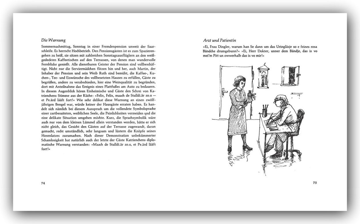 | Schlagworte | Anekdoten • Anekdoten aus dem Saarland • Humor • Humor aus dem Saarland • Humoriges aus dem Saarland • Lustiges aus dem Saarland • Saar • Saarbrücken • Saarland • Saarland; Humor • Saarländisch • Saarländische Anekdoten • Saarländischer Humor • Saarländische Späßchen • Saar / Saarland; Humor • Spaßiges aus dem Saarland |