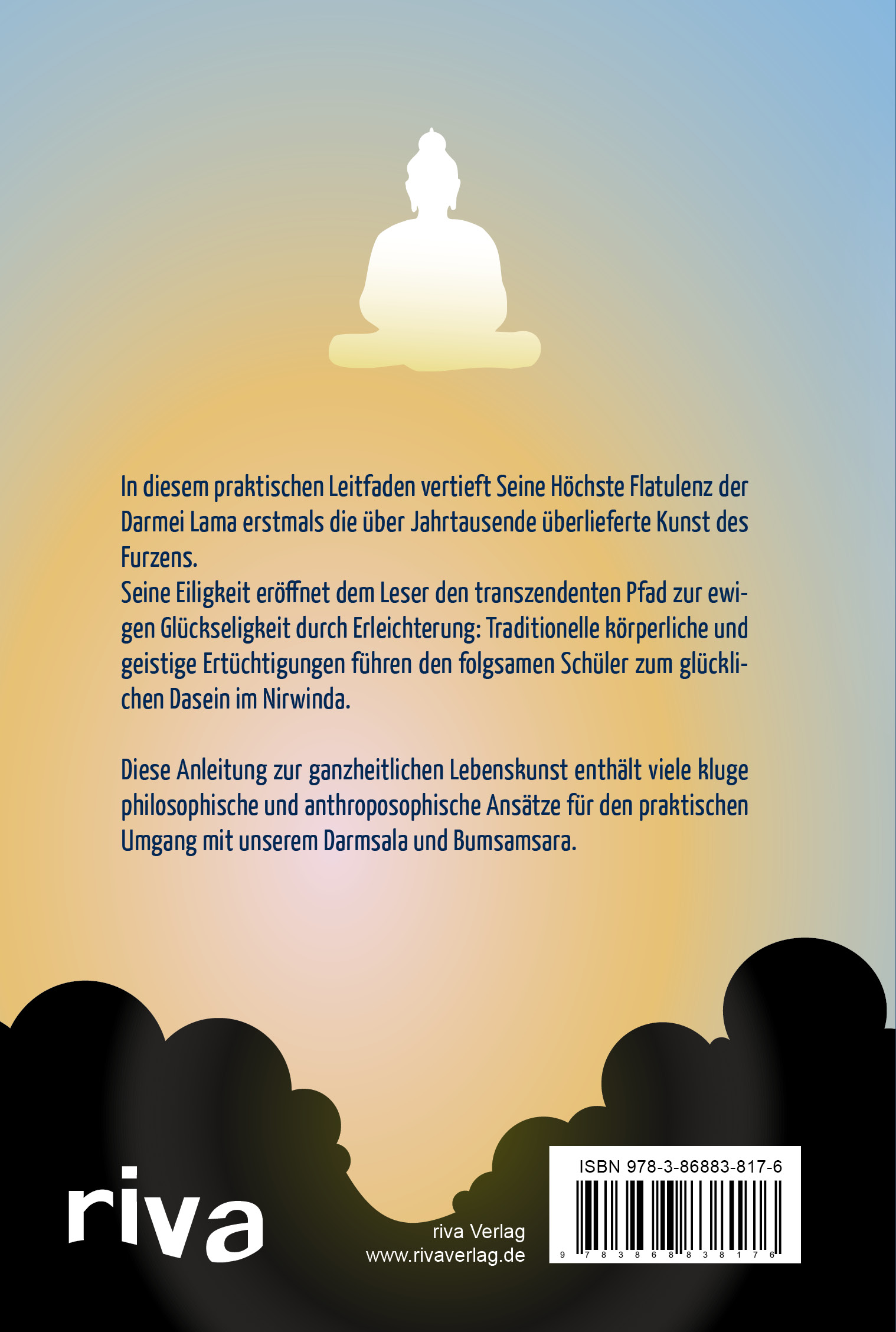 In diesem praktischen Leitfaden vertieft Seine Höchste Flatulenz der Darmei Lama erstmals die über Jahrtausende überlieferte hohe Kunst des Furzens weiter.Seine Eiligkeit eröffnet dem Leser den transzendenten Pfad zur ewigen Glückseligkeit durch Erleichterung: Traditionelle körperliche und geistige Ertüchtigungen führen den folgsamen Schüler zum glücklichen Dasein im Nirwinda. Diese Anleitung zur ganzheitlichen Lebenskunst enthält viele kluge philosophische und anthroposophische Ansätze für den praktischen Umgang mit unserem Darmsala und Bumsamsara.