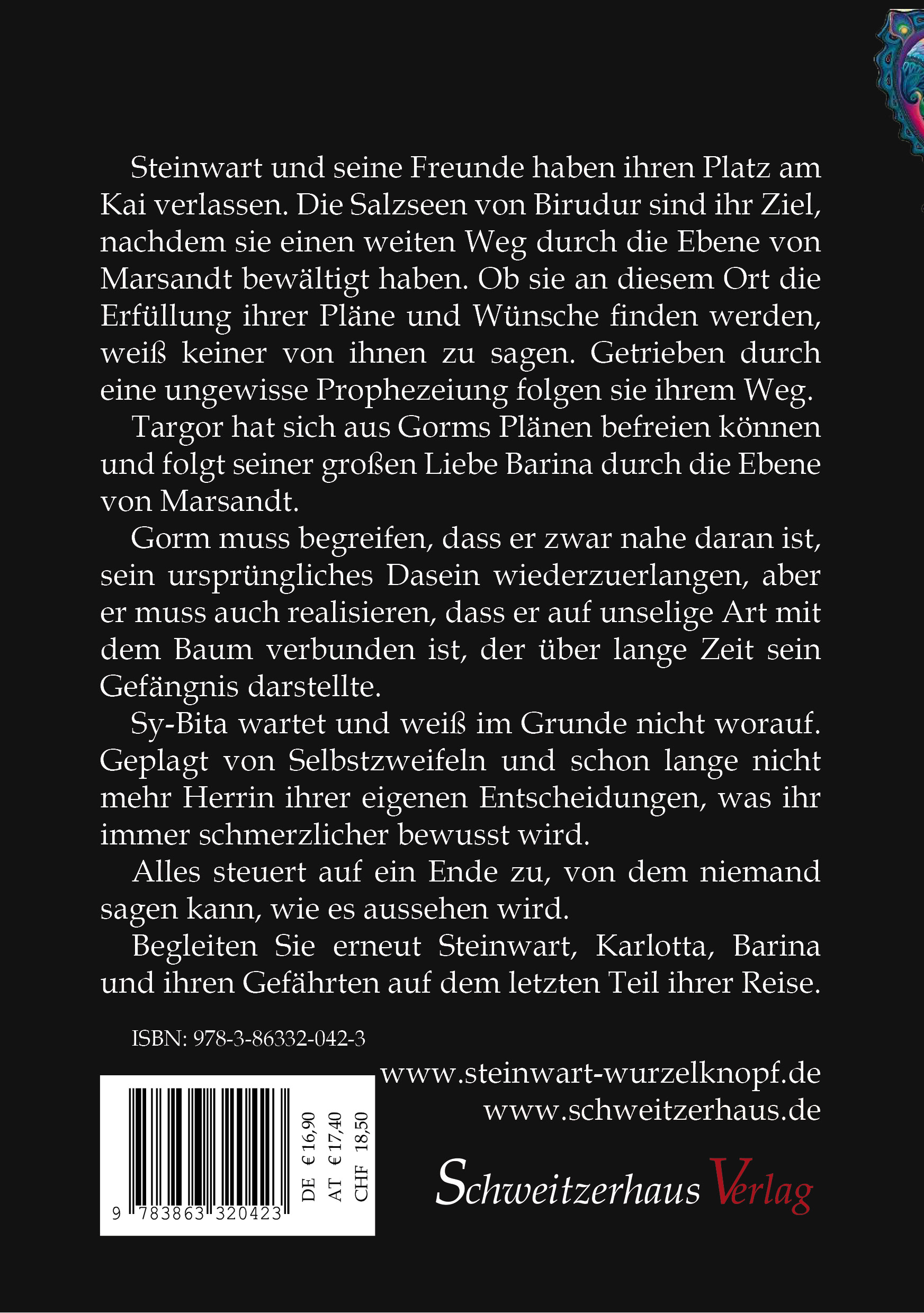 | Schlagworte | Abenteuer • Barina • Belletristik: allgemein und literarisch • Endkampf • Fantasy • Fantasyliteratur • gorm • Quarn • Reise • SiByta • Steinwart Wurzelknopf • Targor • Zwerge • Zwerg; Romane/Erzählungen |