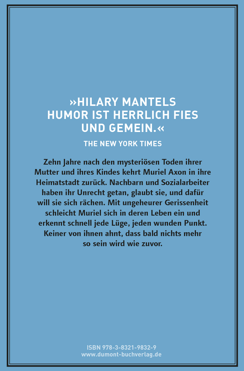 »Die Relativierung der Vernunft durch in sich total logische Wahnsysteme demonstriert Mantel mit gewohnt eiskalter Präzision. Muriel Axon, diese unbeirrbare Irre, ist eine der überlebensgroßen, unvergesslichen Figuren der Weltliteratur.« Richard Kämmerlings, LITERARISCHE WELT »Dem Verstummten und Verdämmernden verhilft Hilary Mantel zur Sprache. Der Effekt ist unheimlich.« Patrick Bahners, FRANKFURTER ALLGEMEINE ZEITUNG »Die beiden erst jetzt übersetzten Frühwerke der gefeierten Britin verbinden wie selbstverständlich Sozialrealismus, Psychodrama, Horror und bösen Humor.« Richard Kämmerlings, DIE WELT »Das Frühwerk der ehemaligen Juristin Hilary Mantel ist herrlich bitterböse und eine Ode auf das Anderssein.« Anne Haeming, BRIGITTE WIR »Bei aller Trostlosigkeit, es sind keine trostlosen Romane, dazu sind sie in ihrer Handlung zu dynamisch, und der Sarkasmus ist schlicht zu vital. [...] Hilary Mantel als Meisterin der katastrophalen Zuspitzungen.« Ferdinand Quante, WDR 5 BÜCHER »Hilary Mantel versteht es meisterhaft, den Leser zum Komplizen von Muriels Perfidie zu machen und zu gemeinem Gelächter anzustiften. Ihr Roman ist unausstehlich unterhaltsam und auf garstige Art sehr lustig.« Sigrid Löffler, ORF »Mantel liefert in ihren beiden Romanen eine grossartige Gesellschafts- und Mentalitätsgeschichte Grossbritanniens.« Richard Kämmerlings, SONNTAGSZEITUNG »All das wäre zum Heulen, wäre Hilary Mantel nicht so eine hervorragende Erzählerin.« Petra Pluwatsch, KÖLNER STADT-ANZEIGER »Ein tiefschwarzes Werk mit Anleihen bei Edgar Allen Poe.« KRONEN ZEITUNG »Witzig, gruselig und am Ende so kühl zum Höhepunkt gebracht, dass man die letzten Seiten gar nicht lesen will.« Britta Bode, BERLINER MORGENPOST »Ihre ersten beiden Romane offenbaren ihren tiefschwarzen Humor.« Sigrid Löffler, FALTER »Wo [Muriel] auftritt, erscheint sie als Spiegel der Schwächen ihres Gegenübers; wenn sie handelt, dann um die Konsequenzen dieser Schwächen eskalieren zu lassen.« Michael Schmitt, NEUE ZÜRCHER ZEITUNG