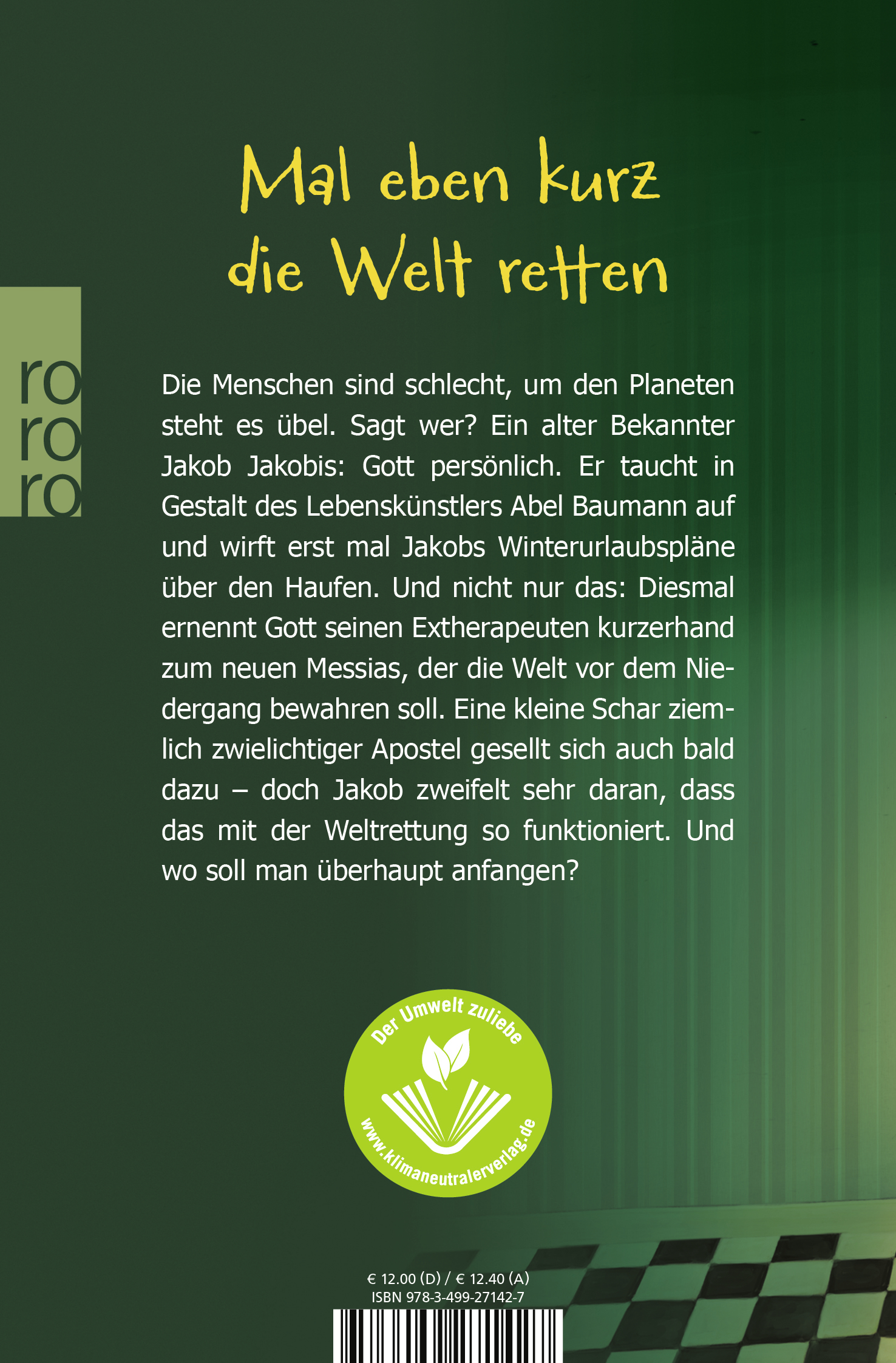 Der taucht kurz vor Weihnachten in Gestalt des Lebenskünstlers Abel Baumann auf und stellt einmal mehr Jakobs Leben auf den Kopf. Diesmal ernennt er seinen Ex-Therapeuten kurzerhand zum neuen Messias und wirft damit Jakobs Urlaubspläne über den Haufen. Eine bunte Schar Apostel gesellt sich auch bald dazu. Von Veganismus bis Antikapitalismus - es kommen sehr unterschiedliche Vorstellungen zusammen, wie man den Planeten und die Menschheit aus dem Schlamassel ziehen kann. Das richtige Konzept zur Weltrettung lässt sich eben nicht einfach so aus dem Ärmel schütteln ...