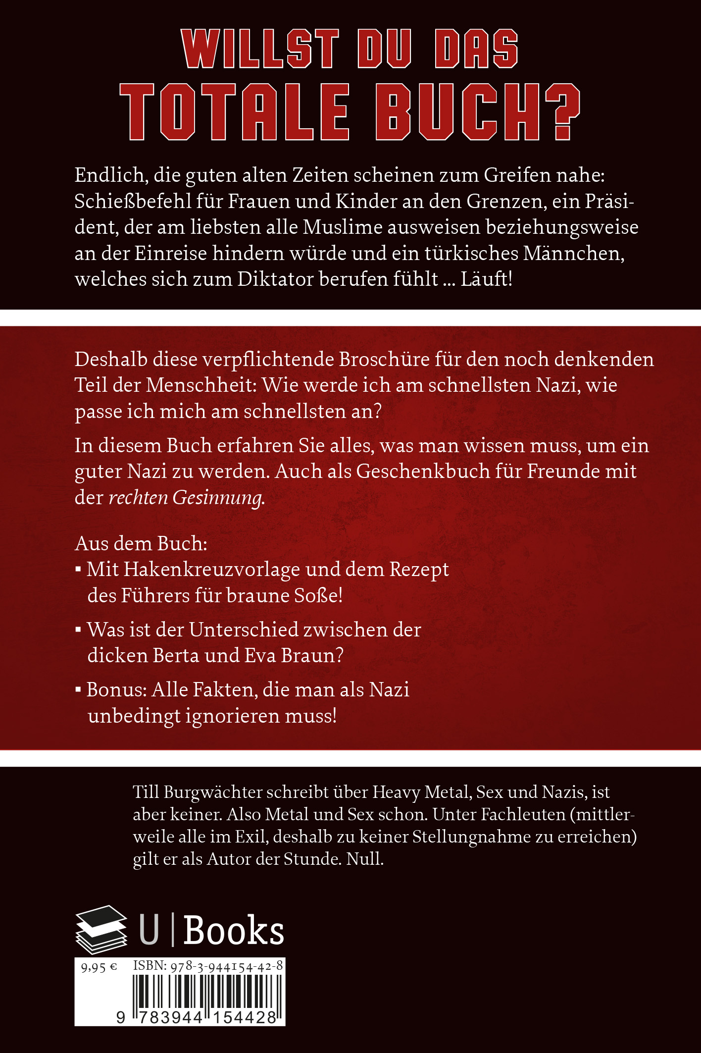 In diesem Buch erfahren Sie alles, was man wissen muss, um ein guter Nazi zu werden. Auch als Geschenkbuch für Freunde mit der rechten Gesinnung.