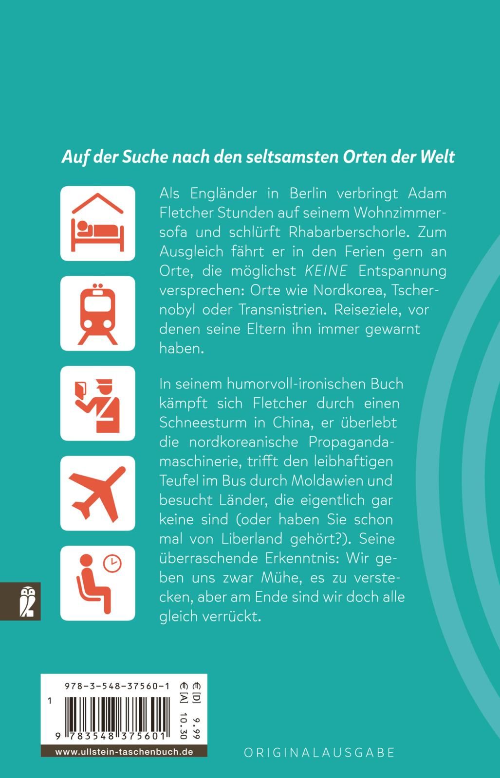 Als Engländer in Berlin verbringt Adam Fletcher Stunden auf seinem Wohnzimmersofa und schlürft Rhabarberschorle. Zum Ausgleich fährt er in den Ferien gern an Orte, die möglichst KEINE Entspannung versprechen: Orte wie Nordkorea, Tschernobyl oder Transnistrien. Reiseziele, vor denen seine Eltern ihn immer gewarnt haben. In seinem humorvoll-ironischen Buch kämpft sich Fletcher durch einen Schneesturm in China, er überlebt die nordkoreanische Propagandamaschinerie, trifft den leibhaftigen Teufel im Bus durch Moldawien und besucht Länder, die eigentlich gar keine sind (oder haben Sie schon mal von Liberland gehört?). Seine überraschende Erkenntnis: Wir geben uns zwar Mühe, es zu verstecken, aber am Ende sind wir doch alle gleich verrückt.