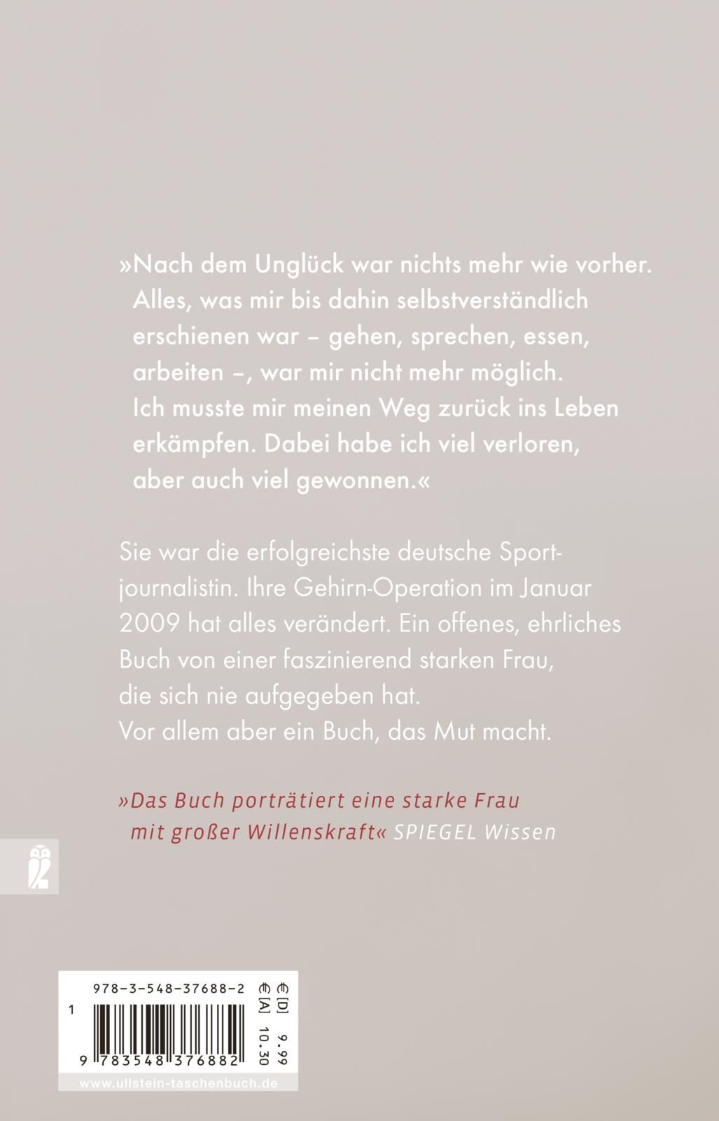 | Schlagworte | Aneurysma • Aneurysma im Kopf • Angst • Behinderung • Beschwerden & Krankheiten • Bestseller 2016 • Biografie • Buch 2017 • ehrliches Buch • Erinnerung • Familie • Gehirnoperation • Gesundheit • Hirnschädigungen • Hoffnung • Höhen und Tiefen • Inklusion • Klinik • Koma • Krankenhaus • Krankheit • Krankheit; Erfahrungsberichte • Krankheit und Öffentlichkeit • Lebenshilfe • Liebe • Lierhaus, Monica • Medizin • Memoiren, Berichte/Erinnerungen • Mut • Neu 2017 • Neuerscheinung 2017 • Neuerscheinungen 2017 • Operation • Prominente • Ratgeber • Ratgeber für Angehörige • Reha • Rollstuhl • Spiegelbestseller • SPIEGEL-Bestseller • Sportjournalistin • Starke Frau • Therapie • Todesangst • Unterstützung • Wachkoma • Zuversicht |