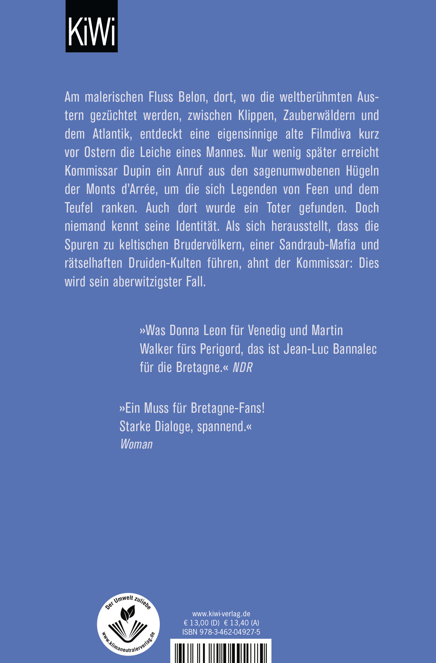 Am malerischen Fluss Belon, dort, wo die weltberühmten Austern gezüchtet werden, zwischen Klippen, Zauberwäldern und dem Atlantik, entdeckt eine eigensinnige alte Filmdiva kurz vor Ostern die Leiche eines Mannes. Nur wenig später erreicht Kommissar Dupin ein Anruf aus den sagenumwobenen Hügeln der Monts d'Arrée, um die sich Legenden von Feen und dem Teufel ranken. Auch dort wurde ein Toter gefunden. Doch niemand kennt seine Identität.