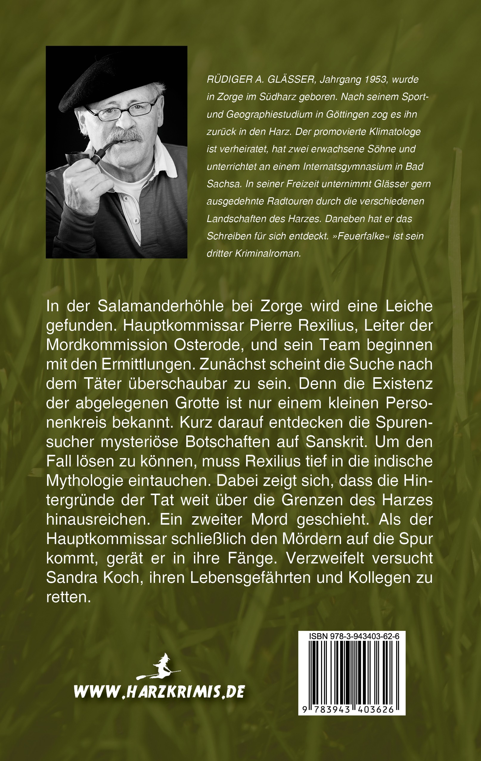 Rüdiger A. Glässer, Jahrgang 1953, wurde in Zorge im Südharz geboren. Nach seinem Sport- und Geographiestudium in Göttingen zog es ihn zurück in den Harz. Der promovierte Klimatologe ist verheiratet, hat zwei erwachsene Söhne und unterrichtet an einem Internatsgymnasium in Bad Sachsa. In seiner Freizeit unternimmt Glässer gern ausgedehnte Radtouren durch die verschiedenen Landschaften des Harzes. Daneben hat er das Schreiben für sich entdeckt.