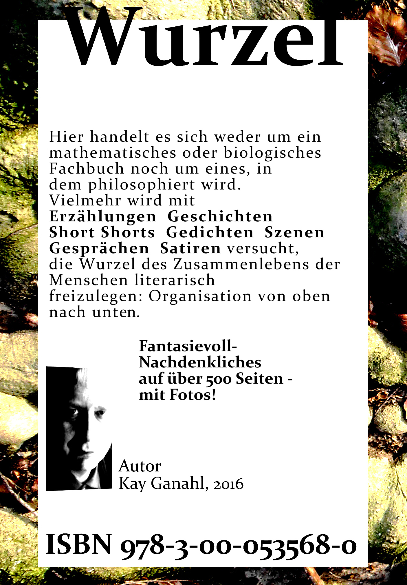 Die „Wurzel“ darf in ihrer Ursprünglichkeit hinterfragt werden - : Auf 522 Seiten, darunter einigen Bildseiten (Fotos), spürt der Autor dem Wurzelwerk nach, indem Licht auf die soziale Organisation der Menschen geworfen wird, um sie erkenntnishaft aufzuhellen. Die „Wurzel“ lebt immer noch, wir sind in ihr; sie erhält uns am Leben. Eben dies: Ursprüngliches von innen, vom Zentrum her kommend und auch nach außen vordringend. Eine Entfaltung. Und so sei ein „Daraus wird etwas!“ zu verkünden. Derlei begegnet uns allerorten. Vielleicht ist es nicht auf den ersten Blick wahrnehmbar, ja, und manchmal wird es sogar vor unseren Blicken versteckt. Aber dass es so ist, überall, fast überall, kann keiner ernsthaft bestreiten …