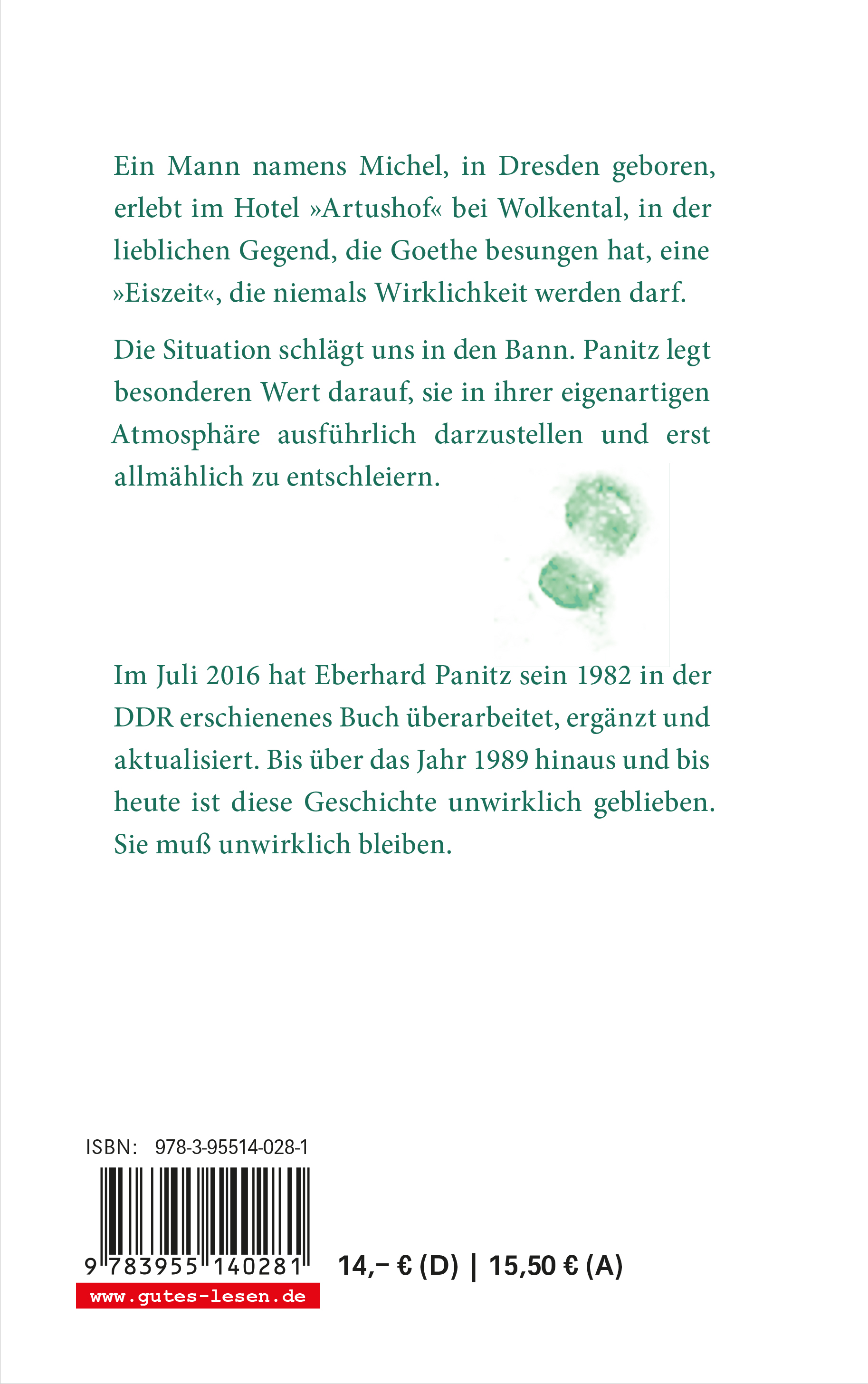 Ein Mann namens Michel, in Dresden geboren, erlebt im Hotel »Artushof« bei Wolkental, in der lieblichen Gegend, die Goethe besungen hat, eine »Eiszeit«, die niemals Wirklichkeit werden darf.