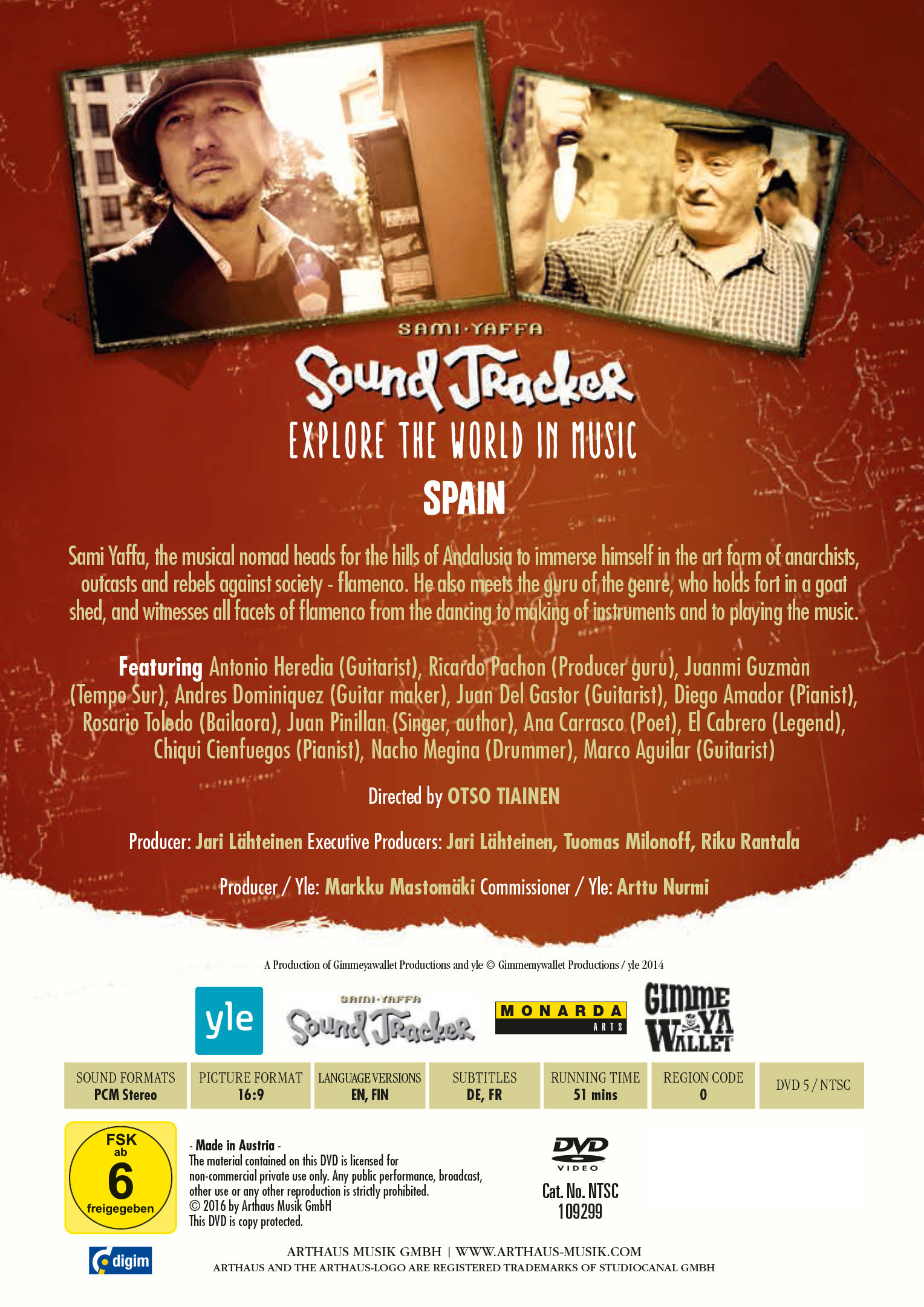 Hallo mein Name ist Sami Yaffa, ich bin Rockmusiker mit einer schier endlosen Neugier und reise seit ich sechzehn bin um die Welt, immer auf der Suche nach neuem Musikalischen. Ich liebe die Musik und tauche ein in unbekannte Kulturen und ihre Klangwelten. Mit diesen Sätzen beginnt die erfolgreiche TV-Serie Sound Tracker aus Finnland. Sami Yaffa, der finnische Bassist und Multiinstrumentalist, begibt sich auf einen musikalischen Road Trip um die Welt - von den USA über Jamaika und Argentinien, der Türkei und Serbien, bis nach Indien und Indonesien. Dabei gilt es die landestypische Musik zu erkunden. Sami beginnt, mit den Einheimischen zu musizieren und ihre Kulturen kennenzulernen. Auch wenn die Musik noch so unterschiedlich sein kann, eines wird deutlich - Musik ist überall, sie verbindet und ist ein wesentlicher Bestandteil unseres Lebens. Sami Yaffa macht sich auf den Weg nach Spanien in die andalusischen Berge, um in die Kunstform des Flamenco einzutauchen. Außerdem trifft er den Guru des Genres, der ihm alle Facetten des Flamenco, vom Tanz bis zum Herstellen der typischen Instrumente, näher bringt.