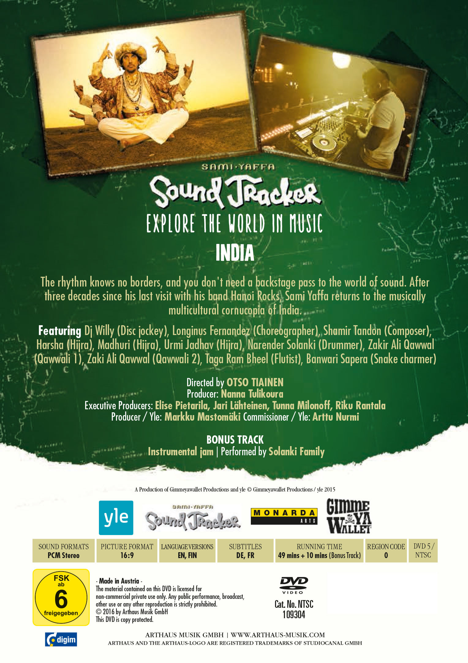 Hallo mein Name ist Sami Yaffa, ich bin Rockmusiker mit einer schier endlosen Neugier und reise seit ich sechzehn bin um die Welt, immer auf der Suche nach neuem Musikalischen. Ich liebe die Musik und tauche ein in unbekannte Kulturen und ihre Klangwelten. Mit diesen Sätzen beginnt die erfolgreiche TV-Serie Sound Tracker aus Finnland. Sami Yaffa, der finnische Bassist und Multiinstrumentalist, begibt sich auf einen musikalischen Road Trip um die Welt - von den USA über Jamaika und Argentinien, der Türkei und Serbien, bis nach Indien und Indonesien. Dabei gilt es die landestypische Musik zu erkunden. Sami beginnt, mit den Einheimischen zu musizieren und ihre Kulturen kennenzulernen. Auch wenn die Musik noch so unterschiedlich sein kann, eines wird deutlich - Musik ist überall, sie verbindet und ist ein wesentlicher Bestandteil unseres Lebens. Der Rhythmus kennt keine Grenzen und man braucht keinen Backstage-Ausweis für die Musikwelt. Nach drei Jahrzehnten seit dem letzten Besuch mit seiner Band Hanoi Rocks kehrt Sami in dieser Folge zum musikalischen multikulturellen Füllhorn Indiens zurück.
